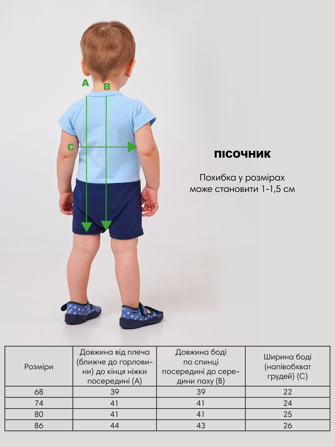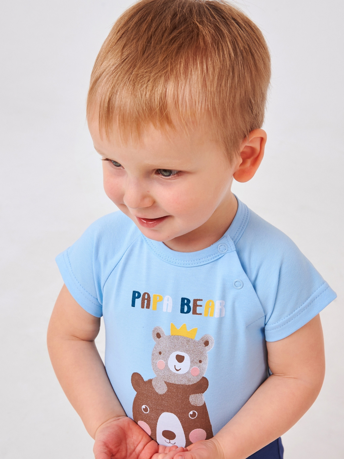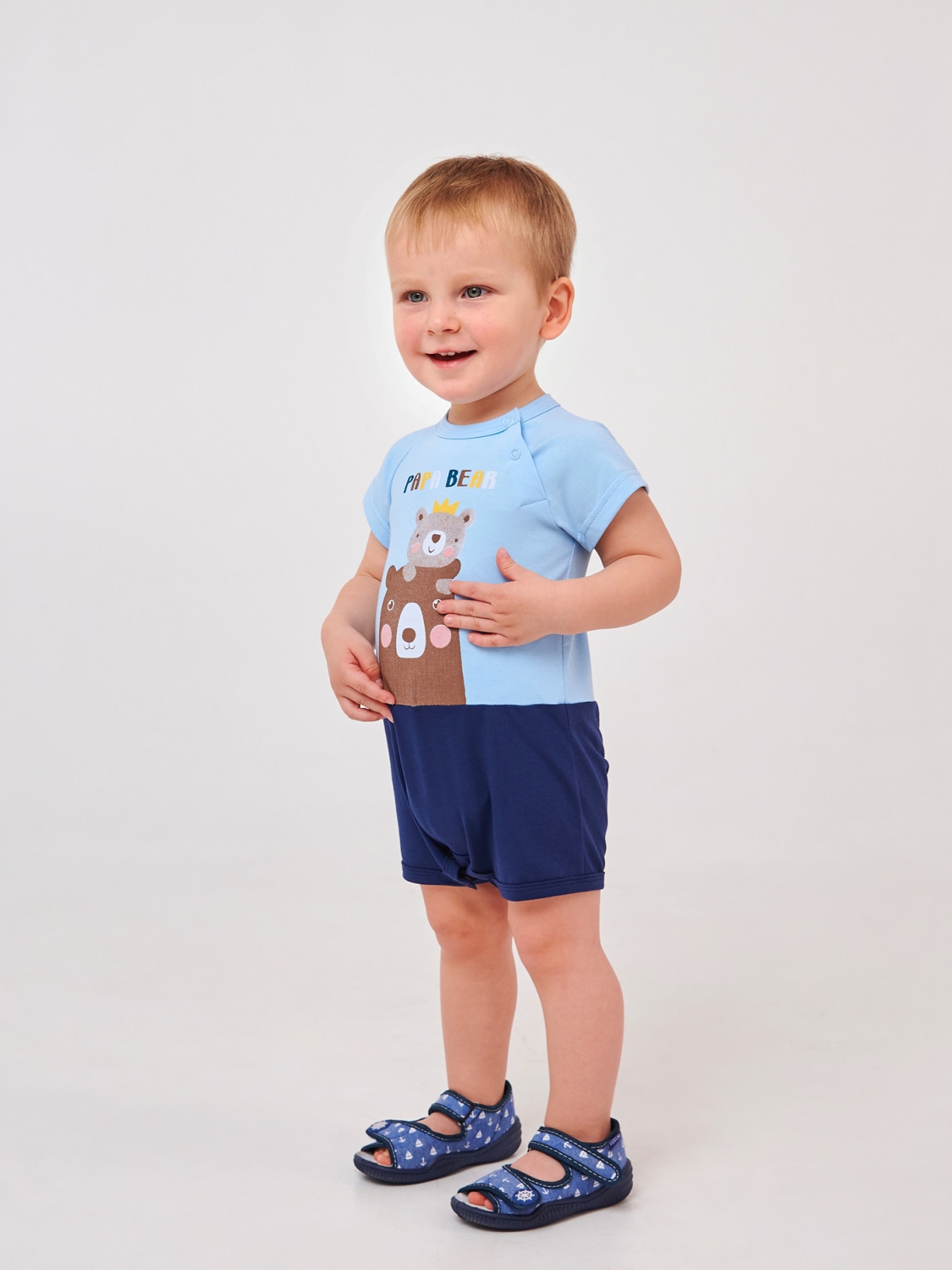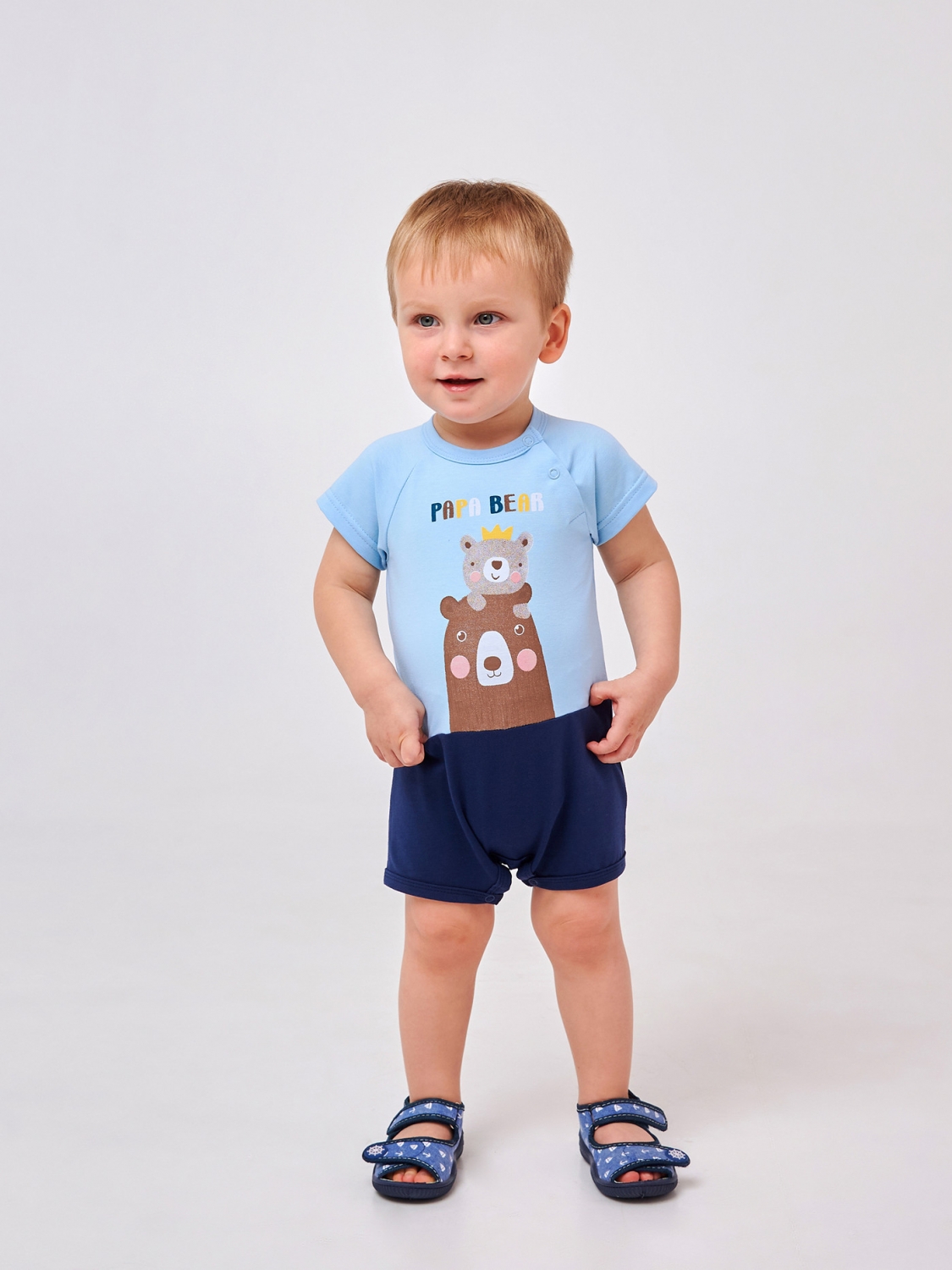 Пісочник у блакитному кольорі в комбінації із синім низом буде дуже ніжно та оригінально виглядати на вашому малюку. Крім того, він прикрашений прямим друком милі тато-ведмедика з його ведмедиком, яка створює неповторний образ тепла та захисту. Кнопочки забезпечать легкість одягання та зняття, що робить догляд за вашим малюком простим та зручним. Пошитий із стрейчевого куліра, наш пісочник гарантує максимальний комфорт та свободу руху вашому хлопчику протягом усього дня. Яскравий та стильний, наш пісочник ідеально підійде для активних ігор на пляжі або у дворі.