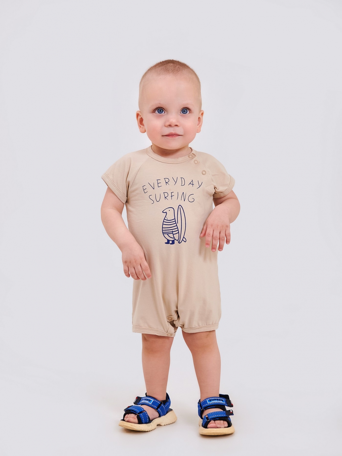 Стильний пісочник для хлопчика – свобода рухів для активних малюків! Прямий друк з написом "Every Day Surfing" - настрій літа та морської пригоди! Стрейчеве кулірне полотно - натуральність, м'якість і комфорт. Зручні кнопки – легкість перевдягання та зручність для малюка.