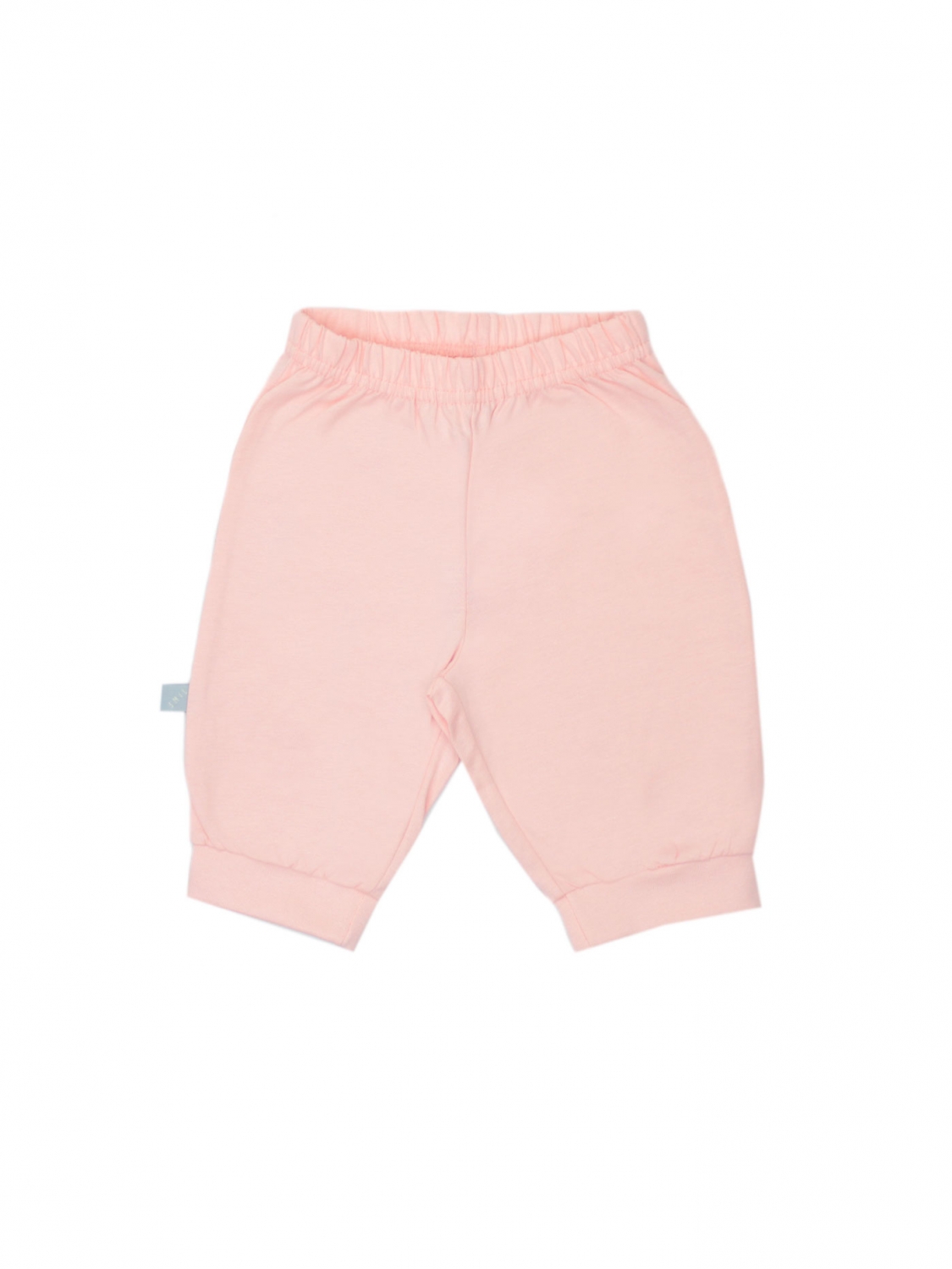 Рожеві бриджі для дівчинки 6-18 місяців. Модель оброблена манжетами та еластичним поясом-гумкою. Виріб зшитий з гладкого кулір.