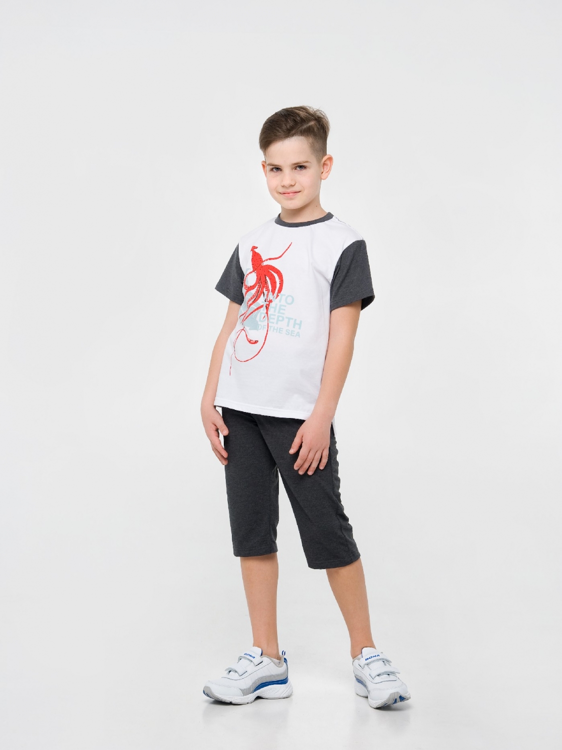 Практичні бриджі в універсальному сірому відтінку розраховані на хлопчаків двох-шести років. Дана модель буде мати гарний вигляд з футболками, вітровками і навіть худі. У такому вбранні дитина може відправитися на прогулянку або на природу. Бриджі пошиті з якісної, гіпоалергенної стрейчевой Лакост, яка не перешкоджає повітрообміну. Крій у вироби лаконічний, класичний, тому його можна поєднувати з будь-яким одягом.