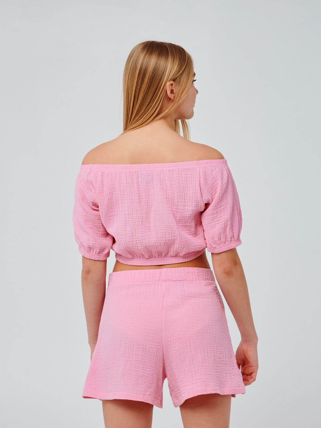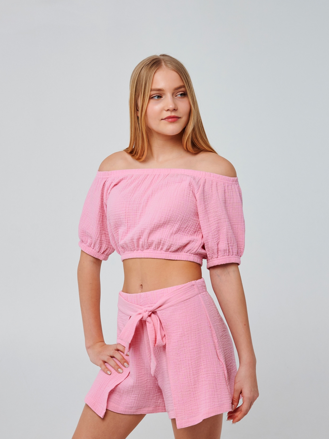 Шорти для дівчинки оригінальний крій яких додасть її образу грайливості та вишуканості, додаючи нотки стилю у кожне вбрання. Пошиті з легкого, м'якого та еластичного мусліну, наші шорти забезпечують максимальний комфорт протягом дня. Яскравий колір додасть свіжості та додасть літнього радісного настрою, роблячи вашу дівчинку стильною та неповторною. Зав'язки попереду шортів зав'язуються в гарний ніжний бант.