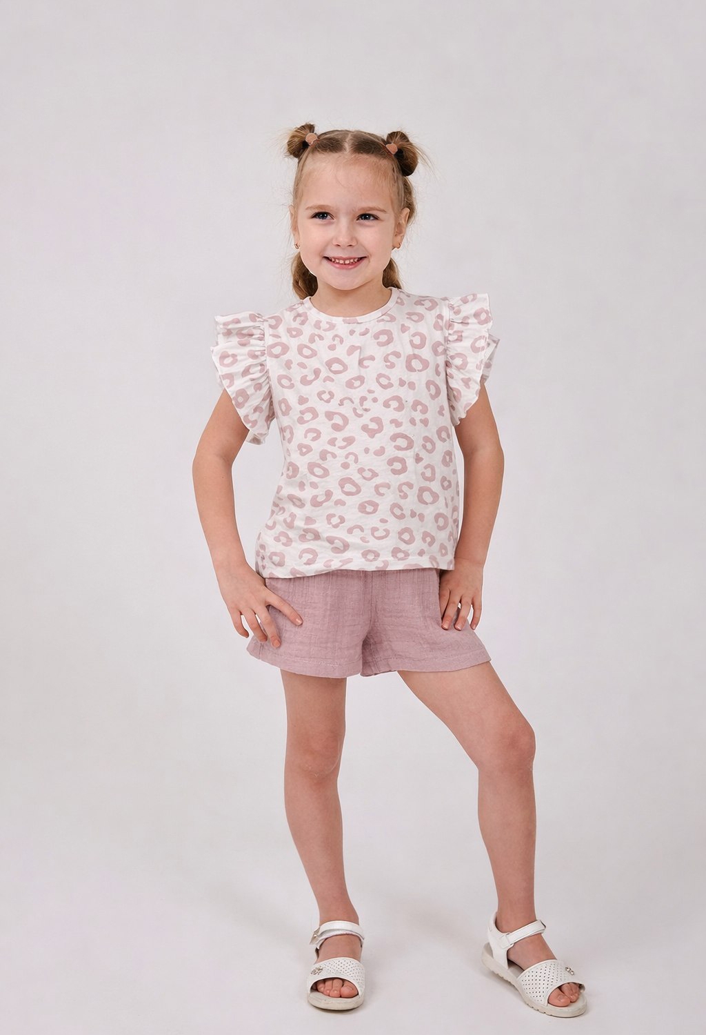 Комплект (футболка+шорти) для дівчинки 113356-1 Молочний