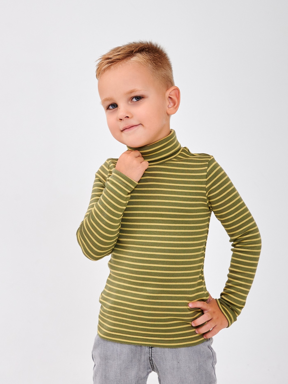Гольф з відворотом для хлопчика з кашкорсу. Теплий, стильний та зручний – чудовий вибір для прохолодного сезону! Полотно кашкор м'яке та еластичне, забезпечує комфорт та свободу рухів. Ворот з відворотом надійно захищає від холоду та додає акуратності до образу. Ідеальний для садка та прогулянок. Легко поєднується із брюками та джинсами.
