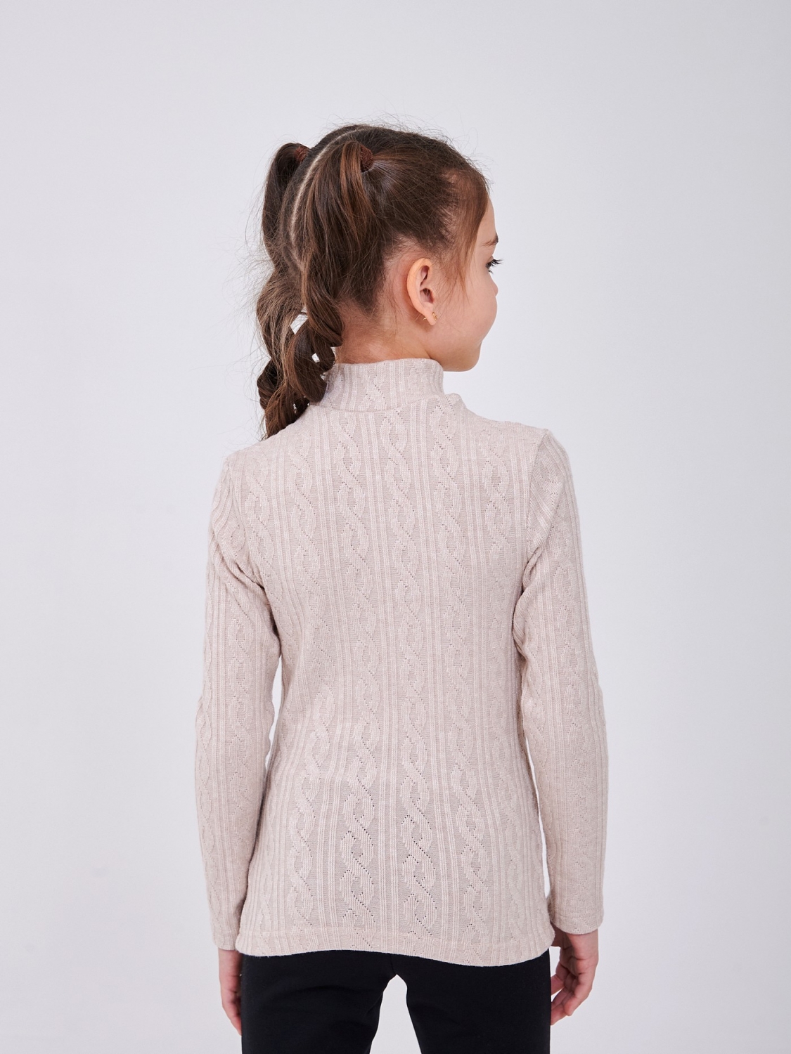 Елегантний гольф для дівчинки з в'язаного трикотажу - це ідеальне поєднання класики та комфорту. Бежевий колір, акуратний комір та вишуканий візерунок роблять його універсальним елементом гардеробу. М'яке та тепле полотно приємне до тіла і чудово сидить по фігурі – підійде як для школи, так і для прогулянок у прохолодні дні. Тепло, яке хочеться носити щодня!