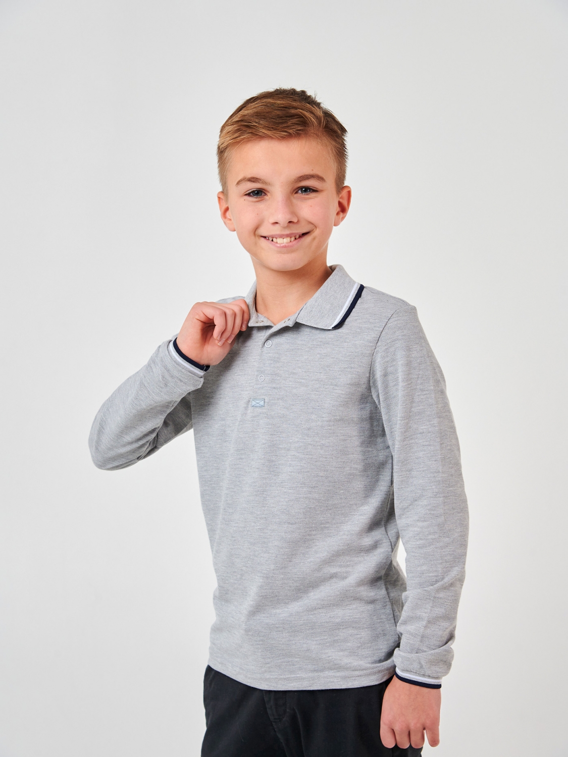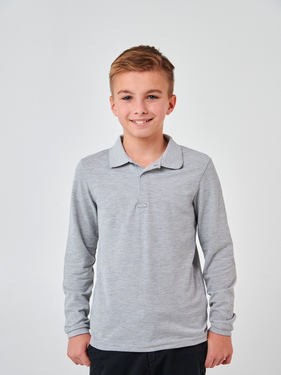 Відмінний вибір для прохолодної погоди, забезпечуючи затишок та захист. Зручні та стильні кнопки, вони додають елегантності та дозволяють легко одягати та знімати футболку. Міцне, м'яке та дихаюче полотно, яке зберігає форму та колір після численних прань. Універсальний колір сірий меланж, який легко поєднує з будь-яким одягом.