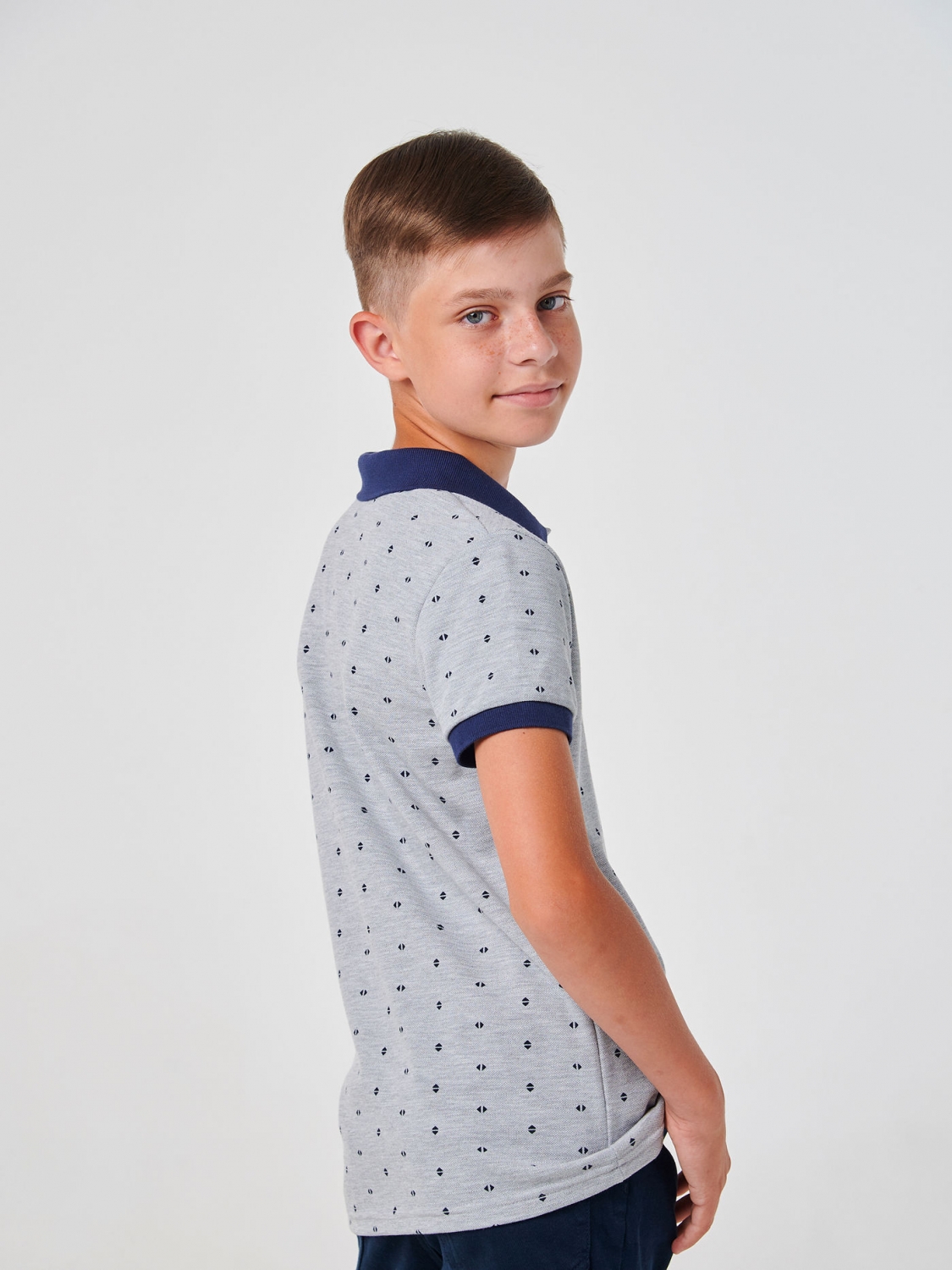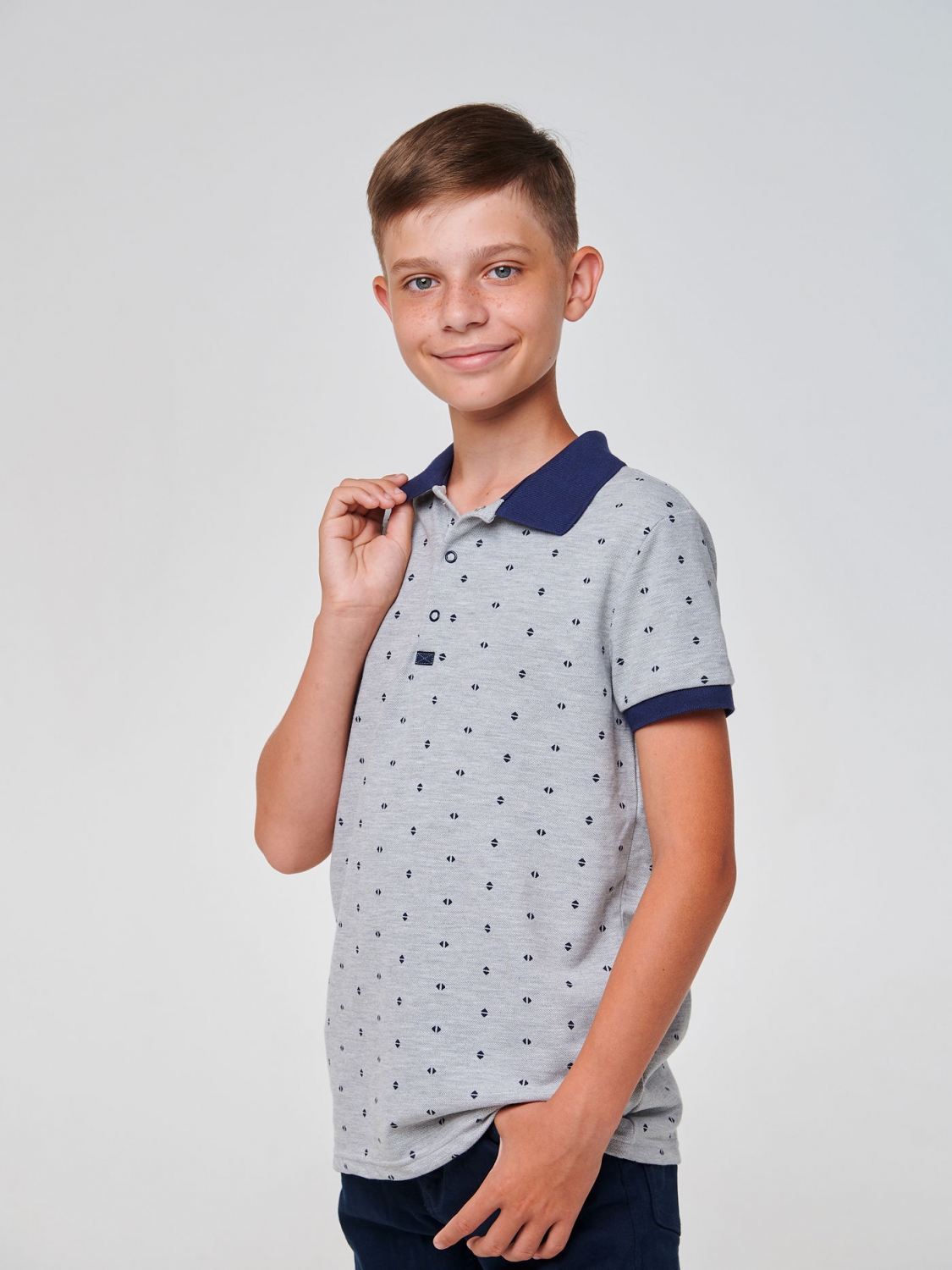 Футболка-поло (короткий рукав) для хлопчика SMIL 114874 Малюнок на сірому