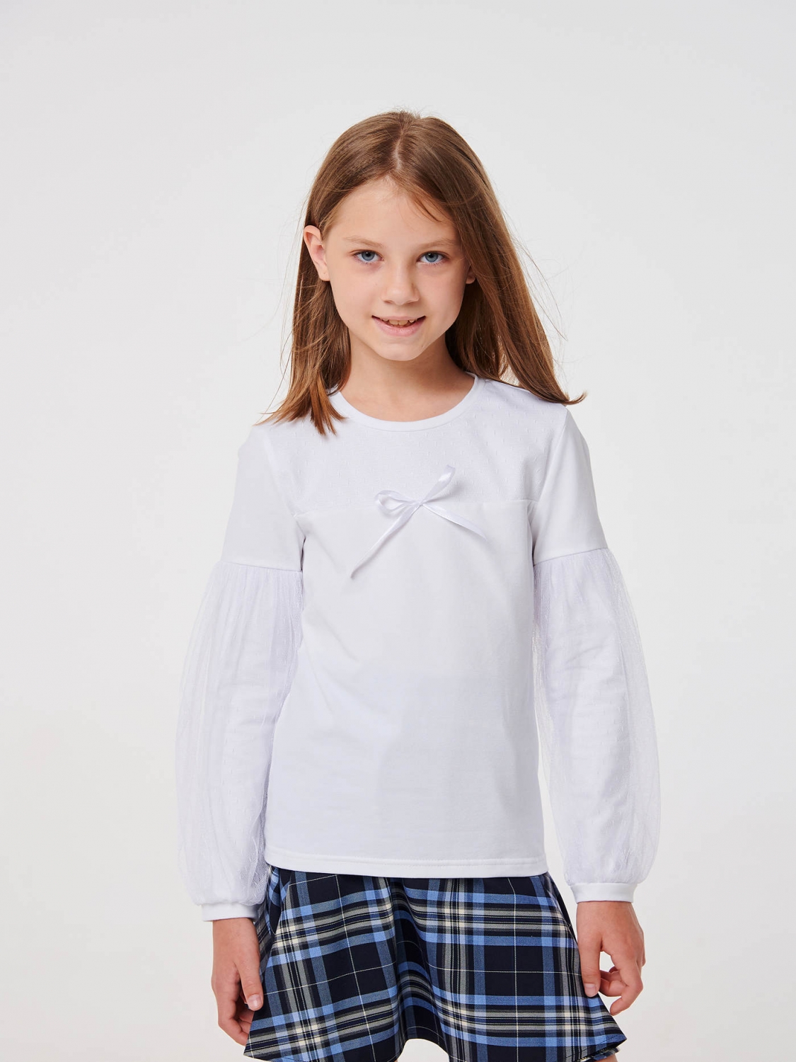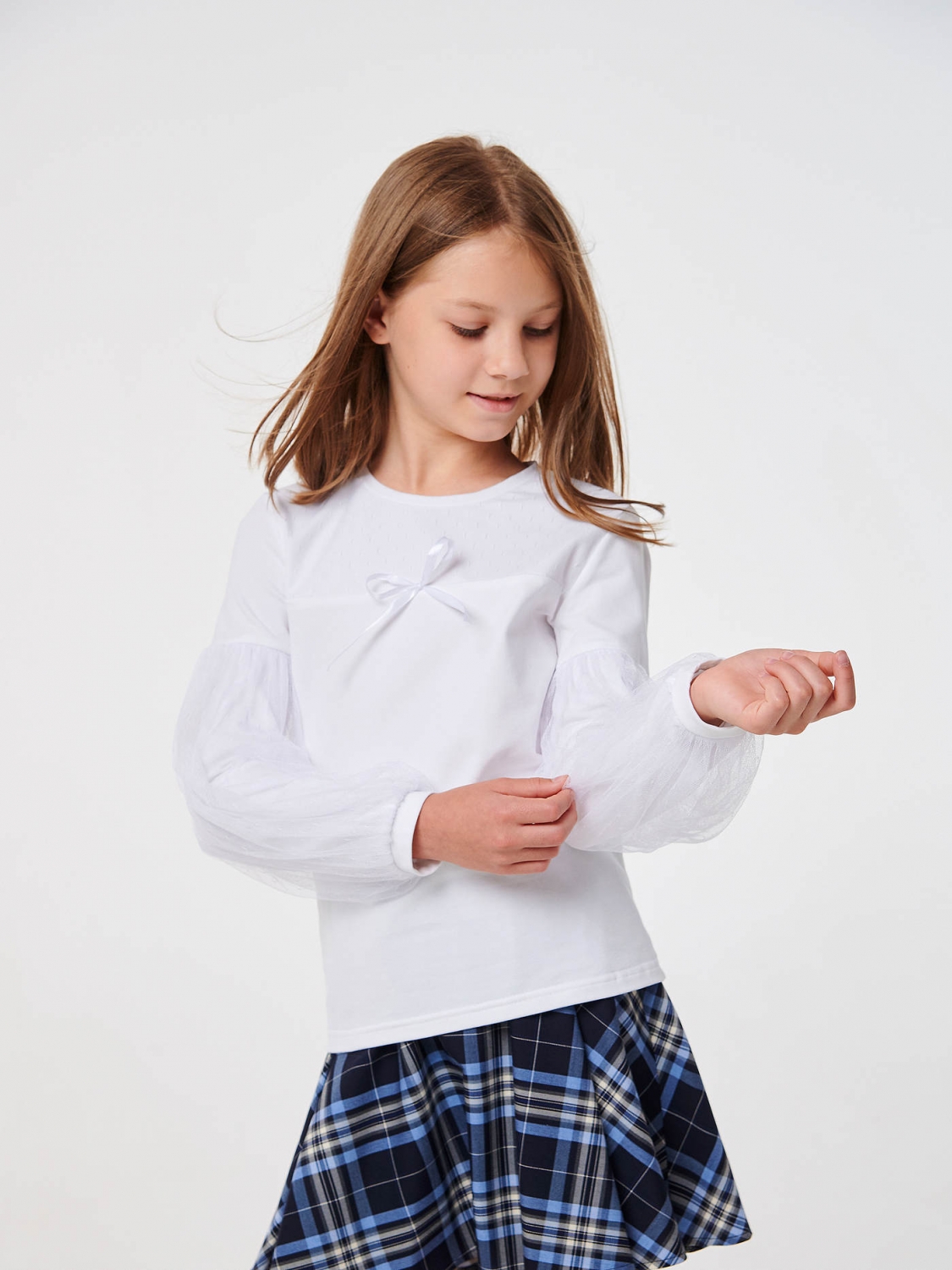 Ідеальна блузка з довгим рукавом – ваше рішення для стильних образів! Блузка пошита з високоякісного стрейчу куліру судин, забезпечуючи неймовірний комфорт і м'якість при носінні. Поєднання класичного дизайну та модних деталей робить нашу блузку ідеальною для будь-якого випадку. Вона легко поєднується зі спідницями та брюками, дозволяючи вам створювати різноманітні образи. Гарні та повітряні рукави з євросітки – особлива особливість блузи, атласний бантик, надають моделі елегантності та витонченості.