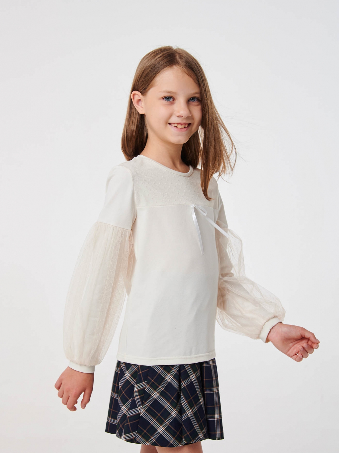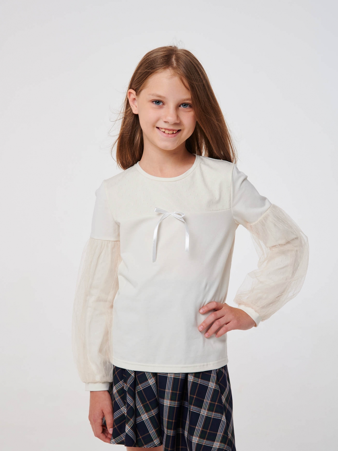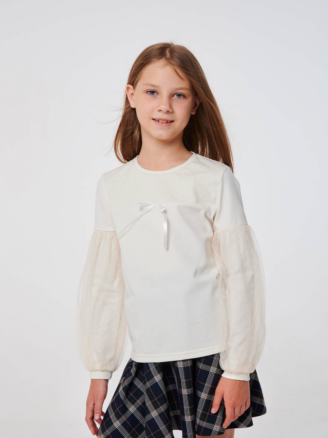 Ідеальна блузка з довгим рукавом – ваше рішення для стильних образів! Блузка пошита з високоякісного стрейчу куліру судин, забезпечуючи неймовірний комфорт і м'якість при носінні. Поєднання класичного дизайну та модних деталей робить нашу блузку ідеальною для будь-якого випадку. Вона легко поєднується зі спідницями та брюками, дозволяючи вам створювати різноманітні образи. Гарні та повітряні рукави з євросітки – особлива особливість блузи, атласний бантик, надають моделі елегантності та витонченості.