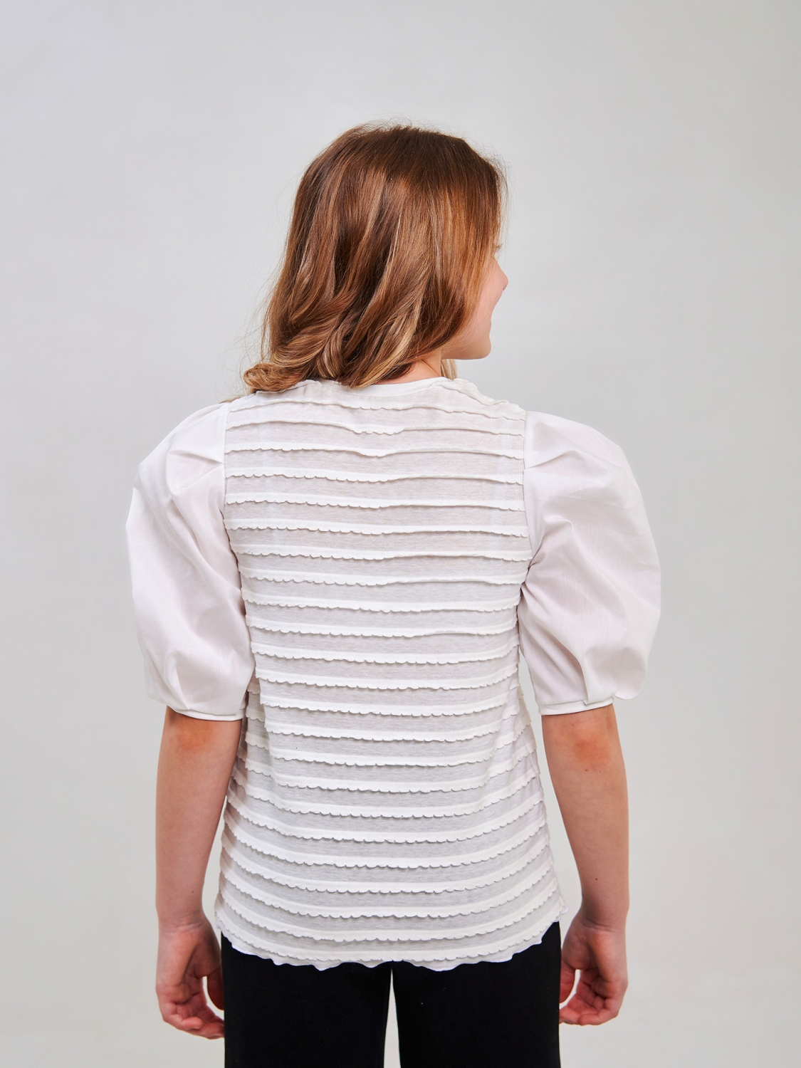 Дитяча блузка | Розмір: 146 см – 158 см | Інтерлок-жаккард найвищої якості | 100% cotton | Повітряні рукави для дівчинки SMIL 114998 Білий