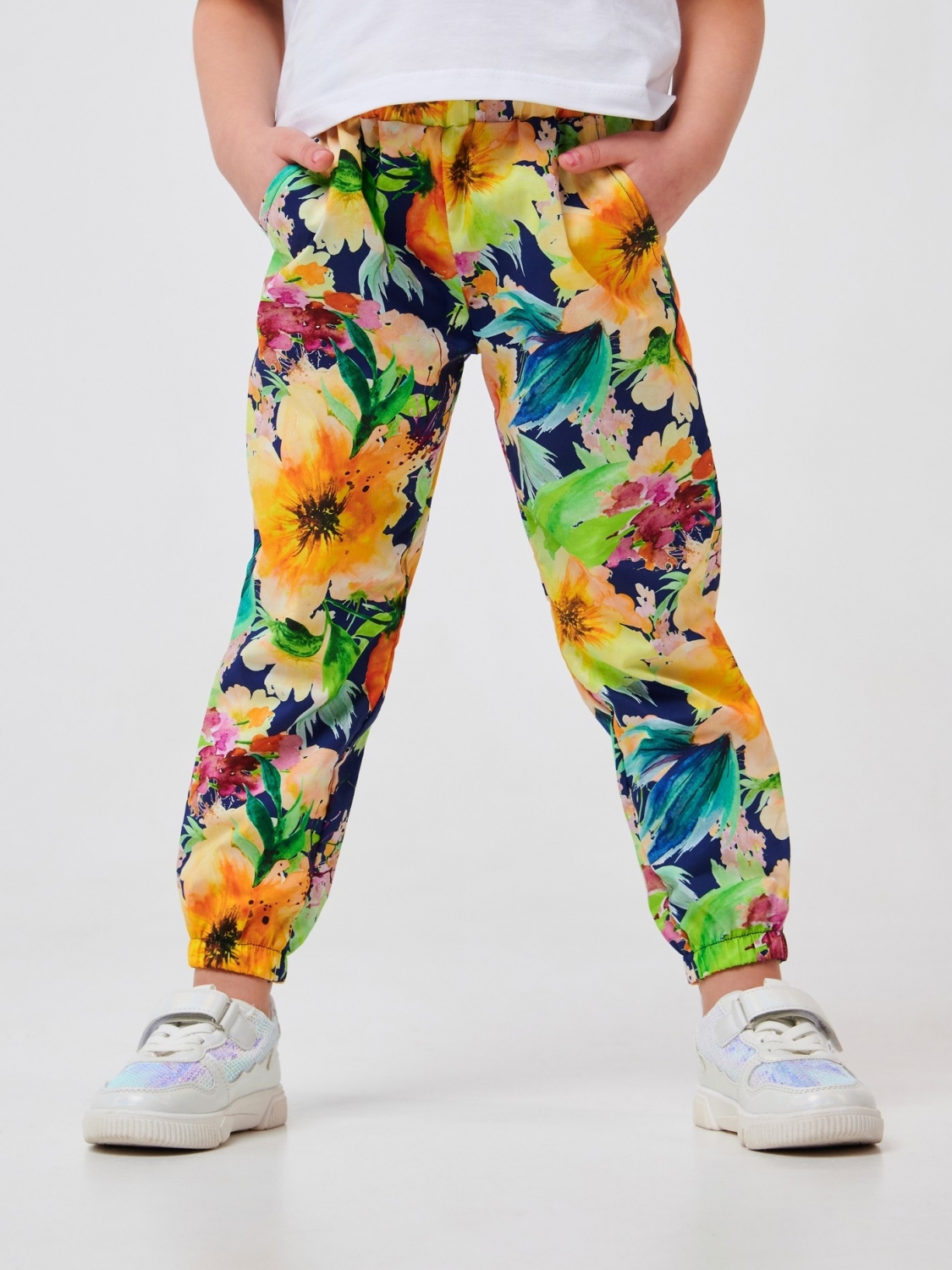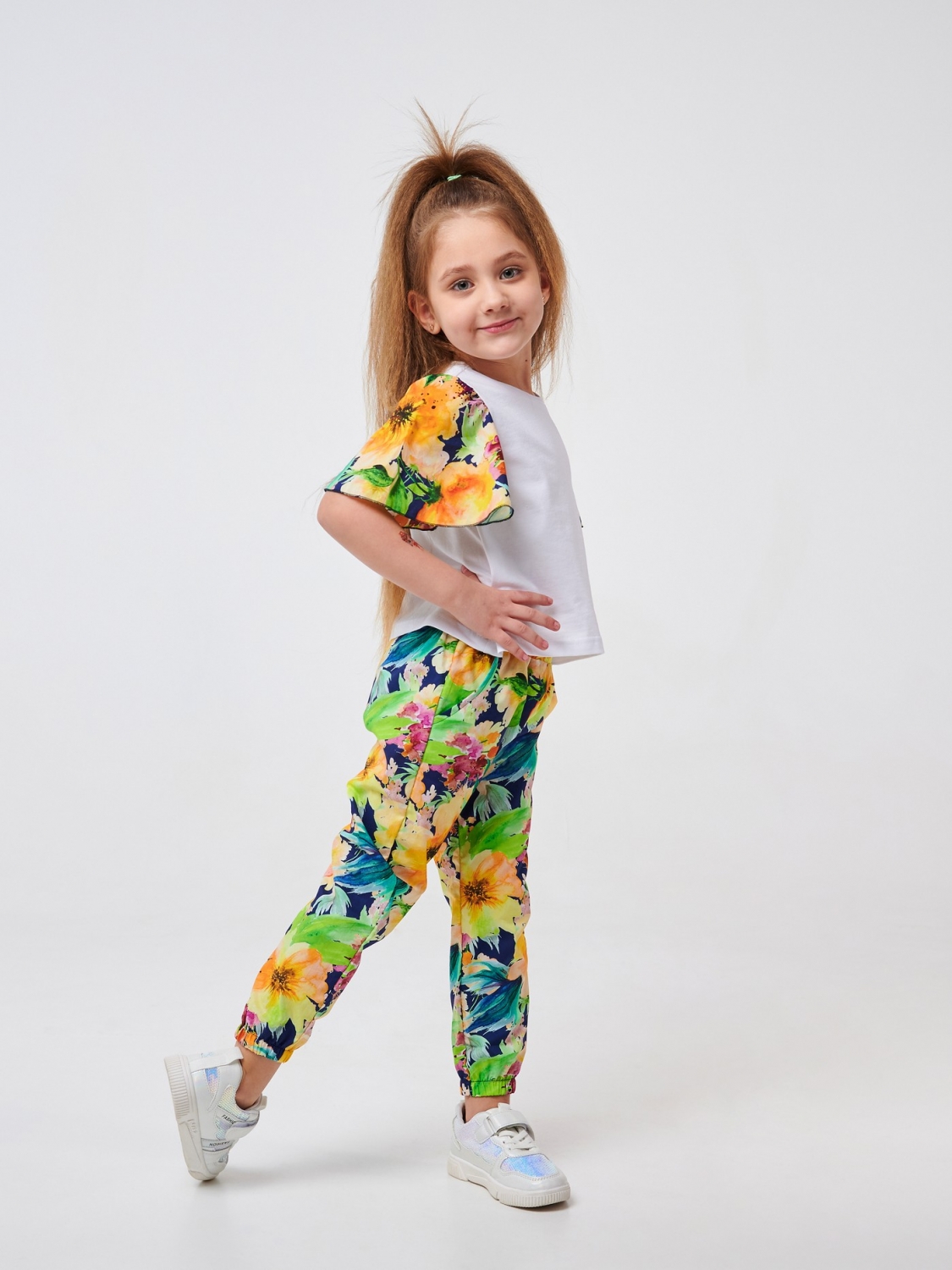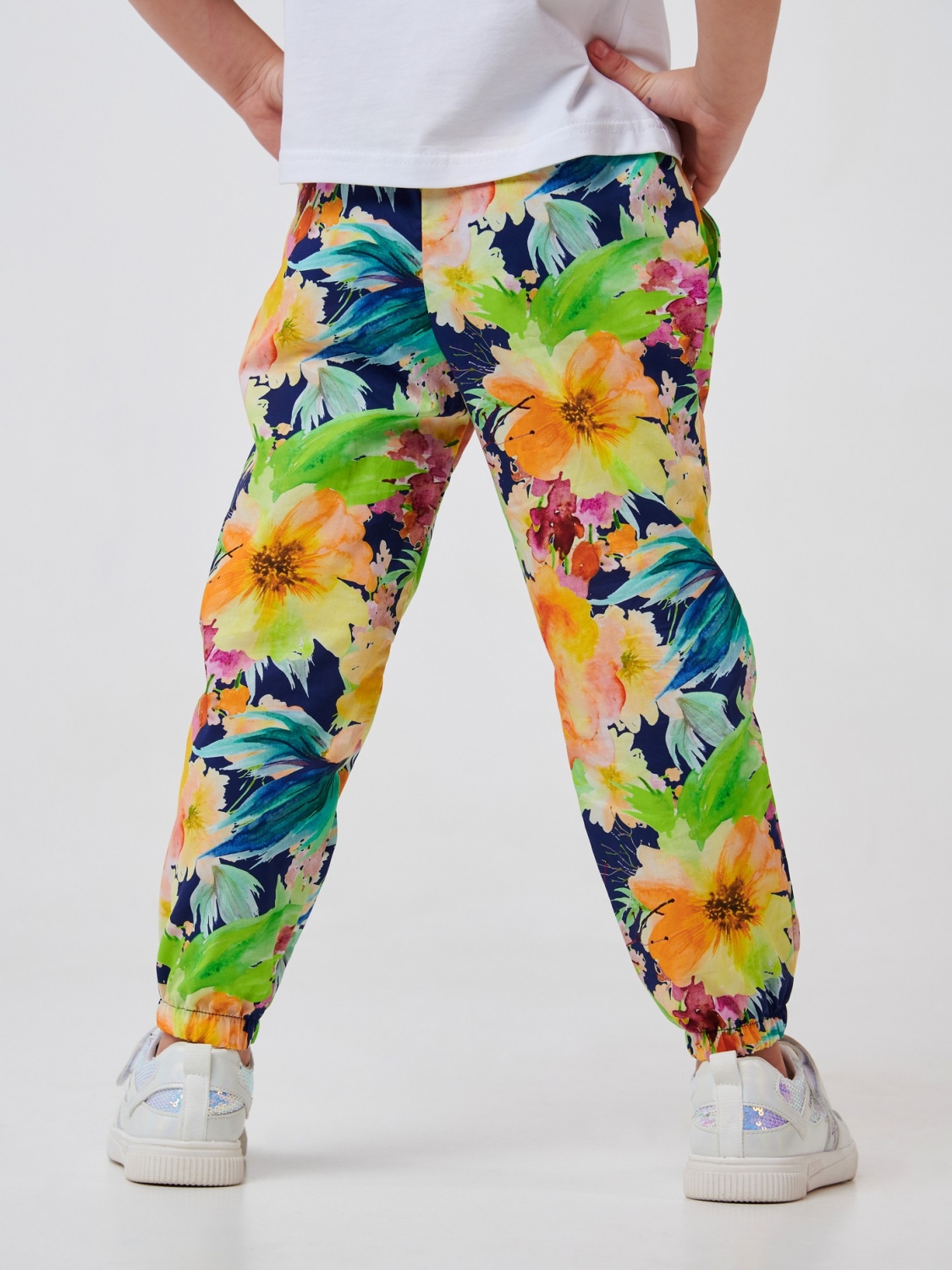 Штани в квітковий принт. У пошитті моделі використаний натуральний матеріал – ситець. Він чудово пропускає повітря. Виріб прямого крою з еластичним поясом можна носити щодня, підібравши до нього в дует світшот чи футболку.