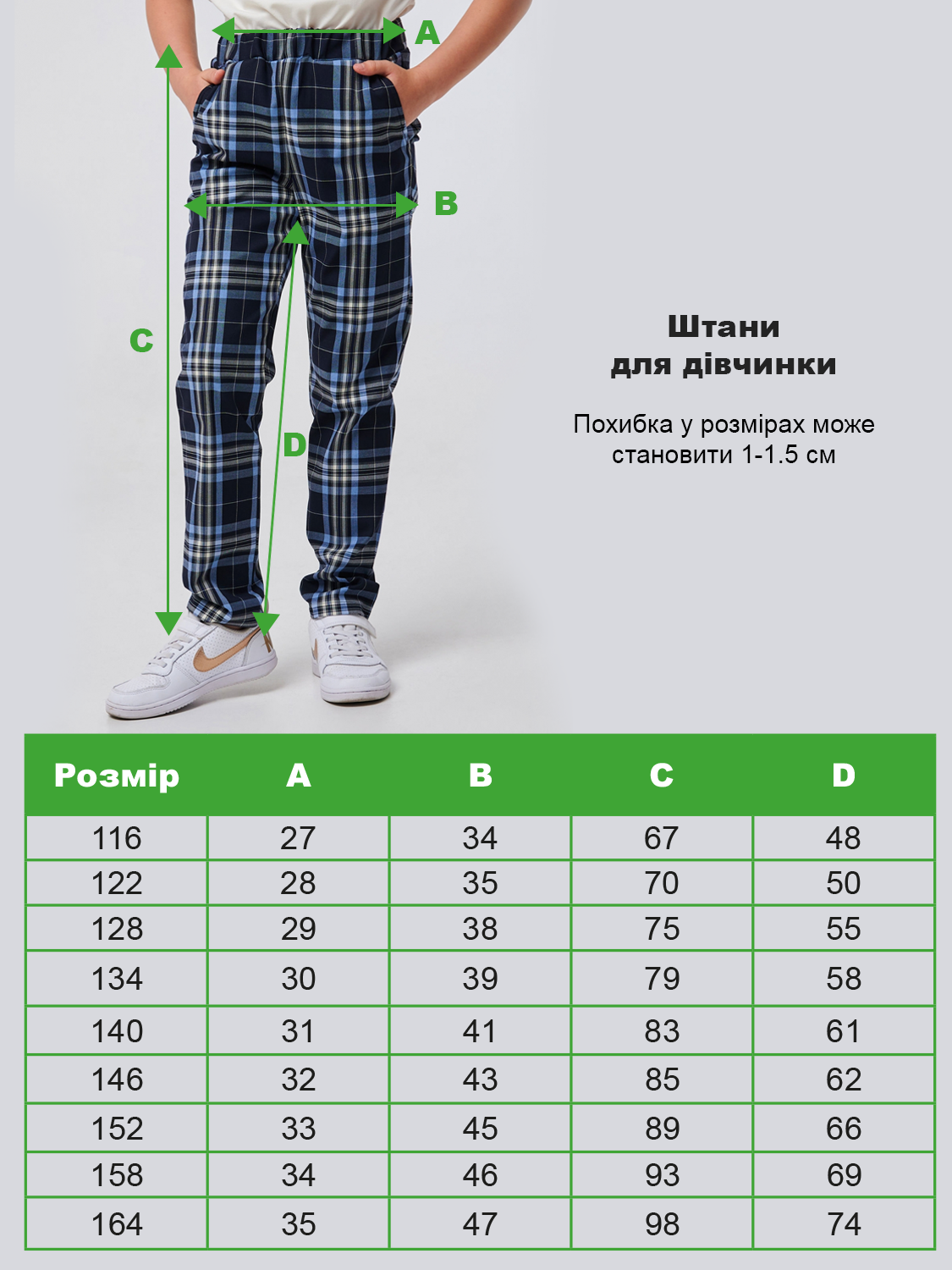 Привнесіть стиль і моду до гардеробу вашої маленької модниці з нашими брюками! Клітчасті штани є класичним та модним вибором, який завжди актуальний. Вони дозволяють створювати різноманітні комплекти та підкреслюють індивідуальність вашої дівчинки. Вони підходять для будь-яких сезонів та різних заходів, додаючи стиль та індивідуальність у кожен образ. Ми пишаємося якістю наших виробів, оскільки використовуємо тільки найкращі матеріали та дбайливо стежимо за кожною деталлю, щоб забезпечити комфорт та міцність наших виробів.