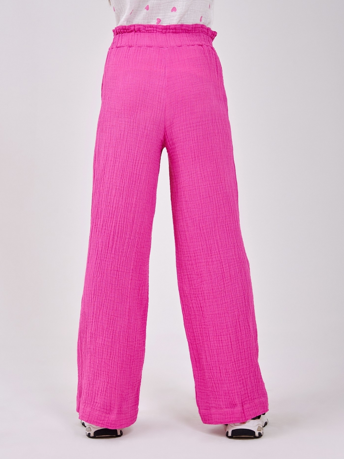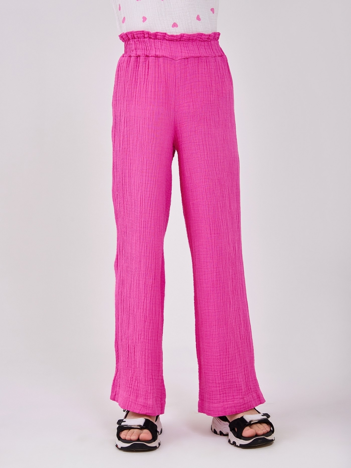 Дитячі брюки | від 122 до 146 | 100% бавовна | Ніжний муслін вищої якості | Ідеально на літо | Дозволяє шкірі дихати для дівчинки SMIL 115683 Малиновий