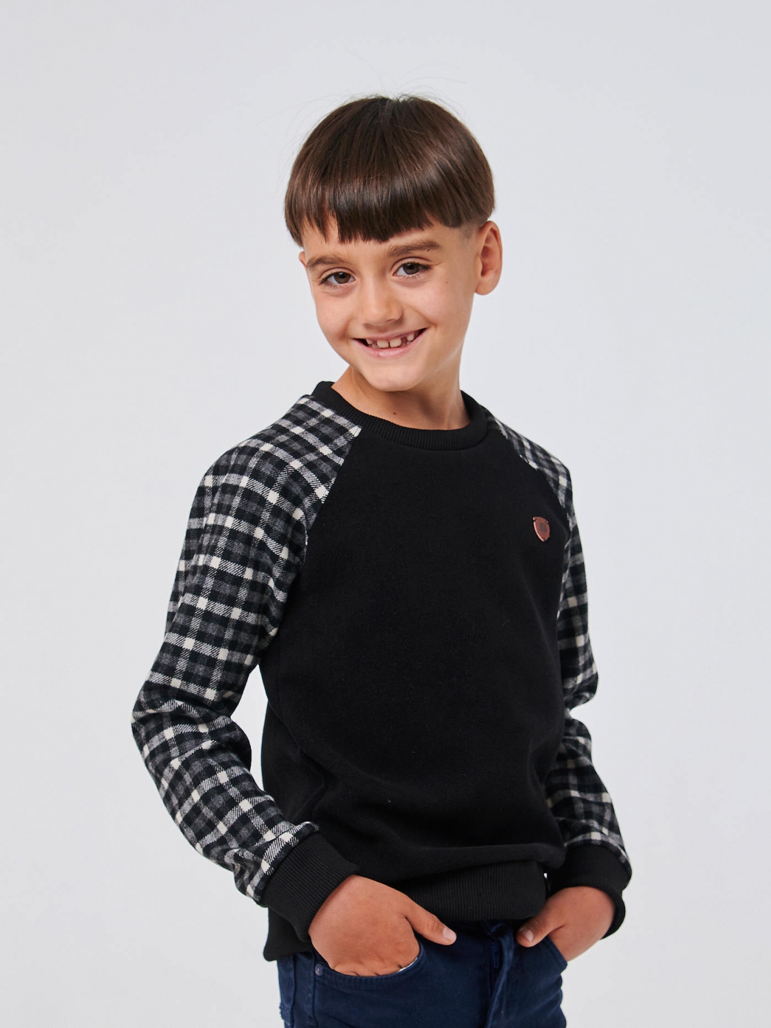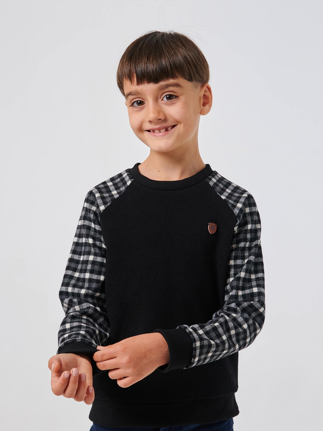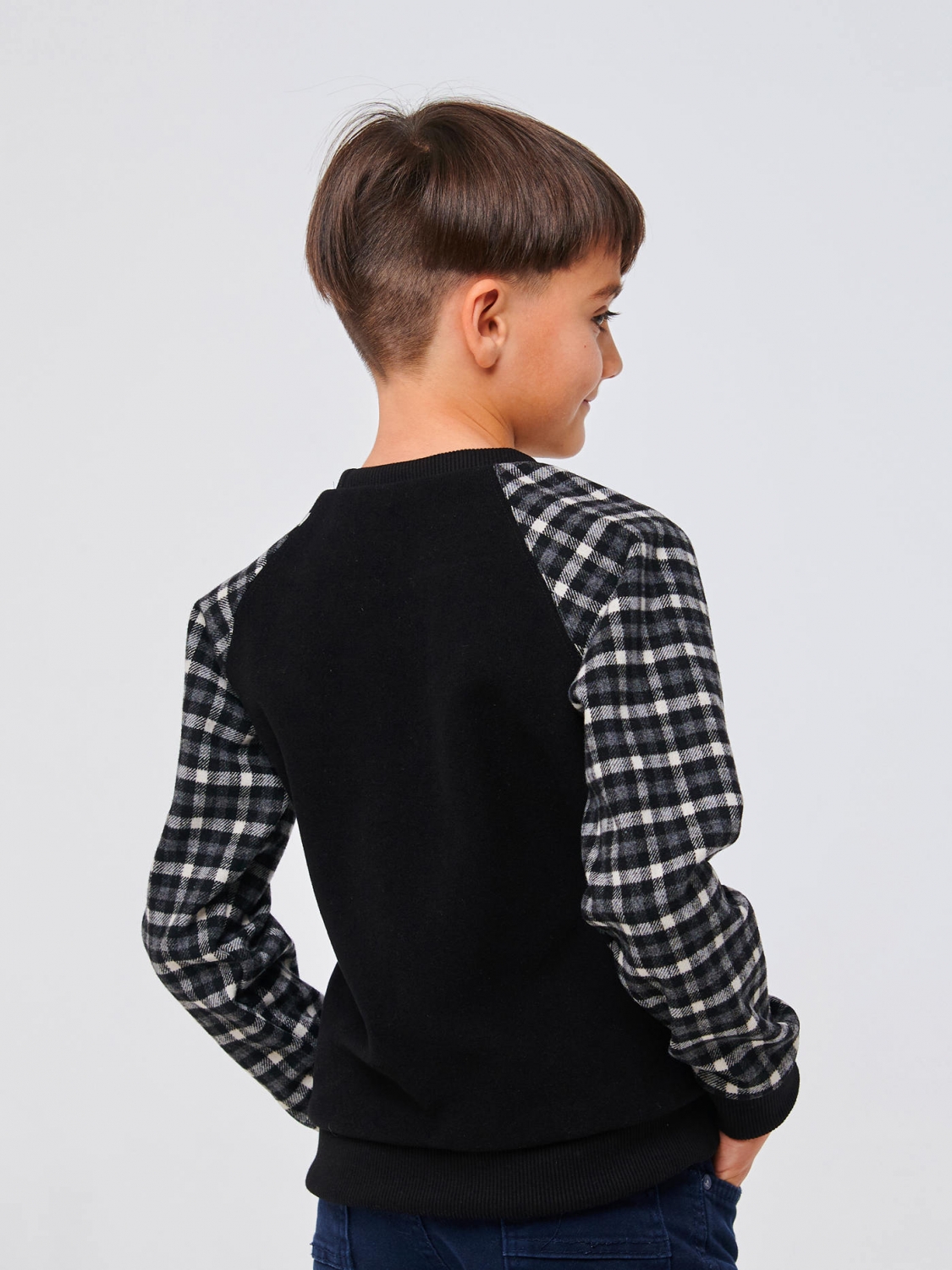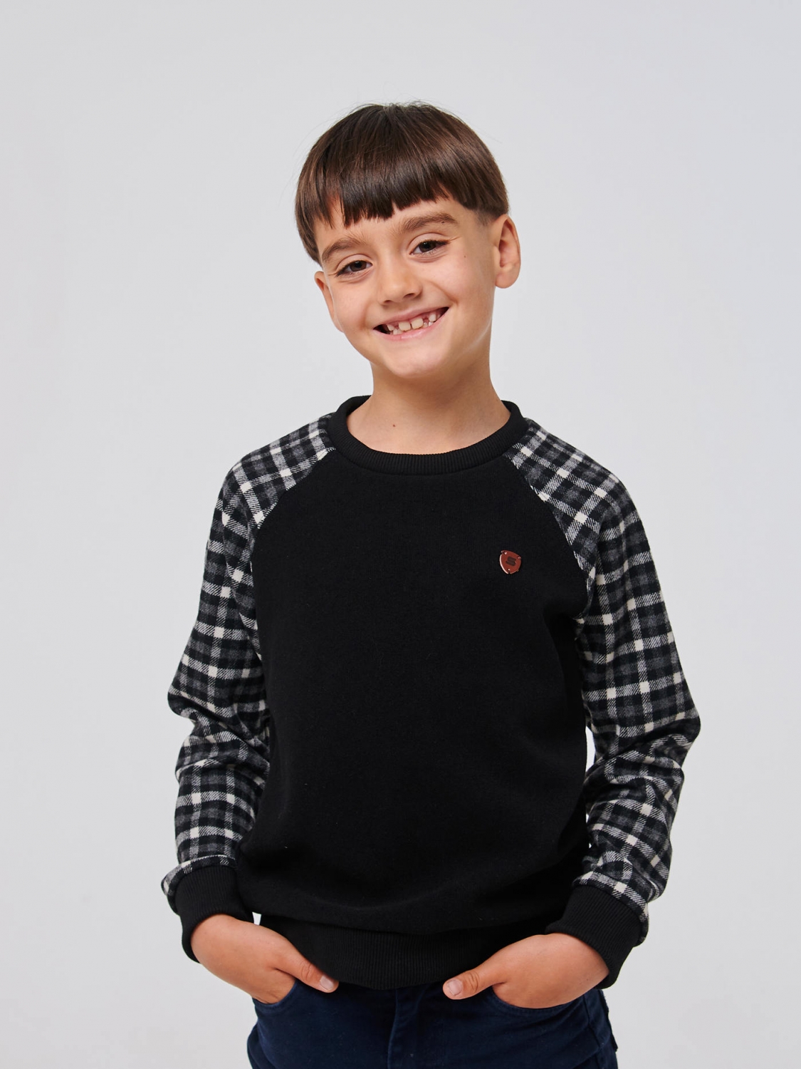 Стильний та зручний пуловер для справжнього модника! Чорно-біла клітка у поєднанні з м'яким полотном селяника створюють елегантний образ для хлопчика будь-якого віку. Селяник зігріє у холодні дні та стане чудовим доповненням до повсякденного гардеробу. Добре поєднується з джинсами чи брюками. Манжети на резинці. Шкіряна нашивка. Зробіть крок у бік стилю та комфорту з нашим чорним пуловером!