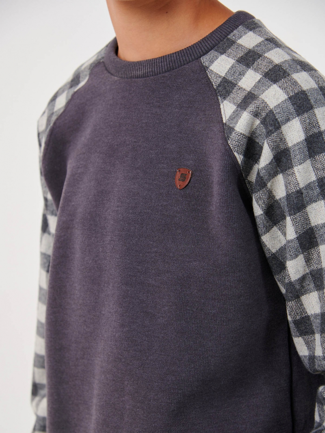 Ця класична модель пуловера стане чудовим доповненням гардеробу вашого хлопчика. Сірий колір легко поєднується з іншими речами, а картатий візерунок додає моделі оригінальності та стилю. Виріб виготовлений із теплого якісного полотна, тому він буде не тільки красивим, але й практичним у використанні. Пуловер прикрашений шкіряною нашивкою.
