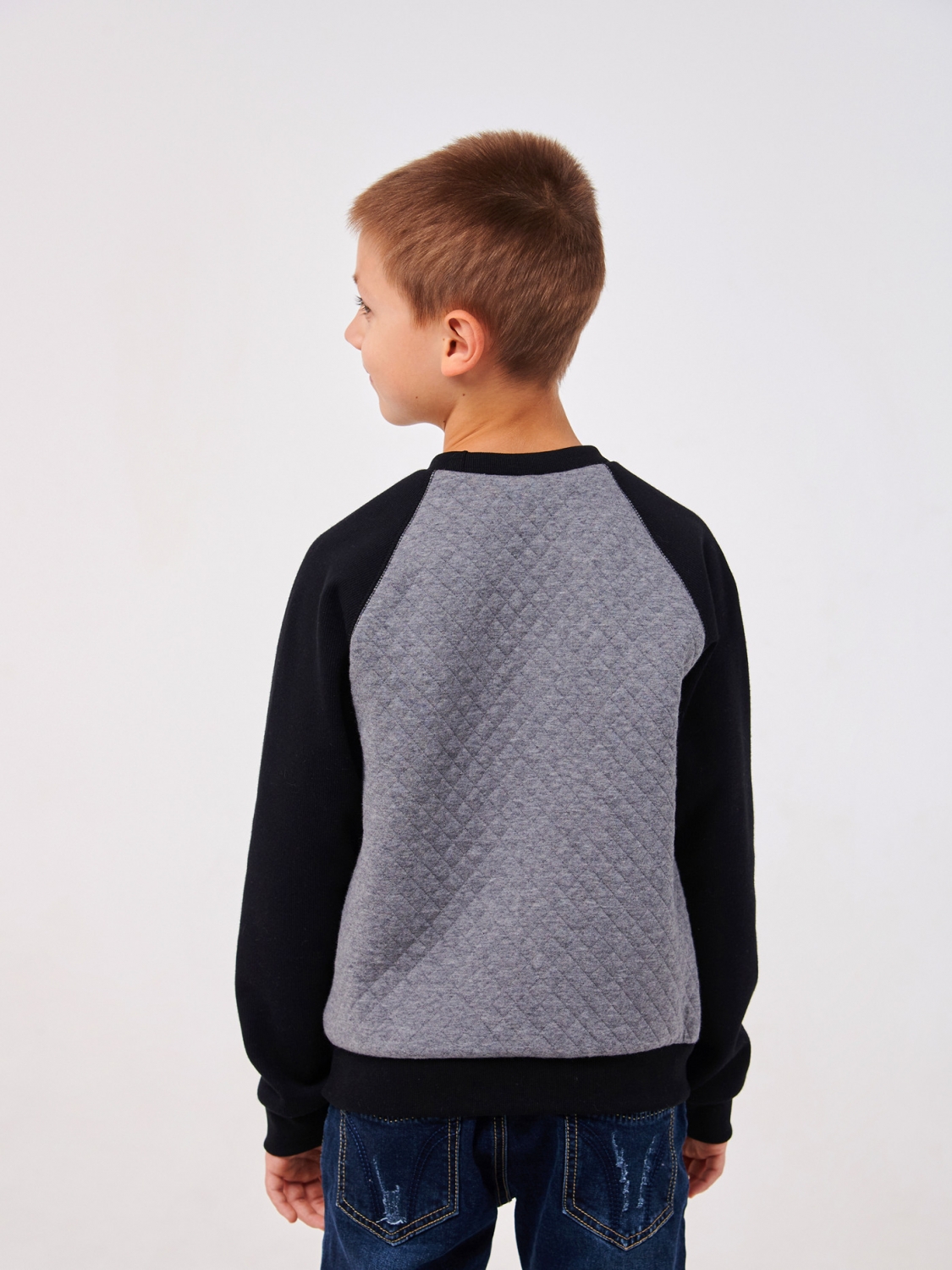 Пуловер з м'якого та теплого полотна капітон забезпечує неперевершений захист від холоду. Особливістю цього пуловера є шкіряна нашивка, яка надає йому вишуканого та стильного вигляду. Чорні рукави пуловера створюють контрастний та модний акцент, що робить вашого хлопчика сучасним та елегантним. Цей стильний елемент наголошує на його індивідуальності. Цей пуловер ідеально підходить для повсякденного носіння, шкільних занять та активного відпочинку.