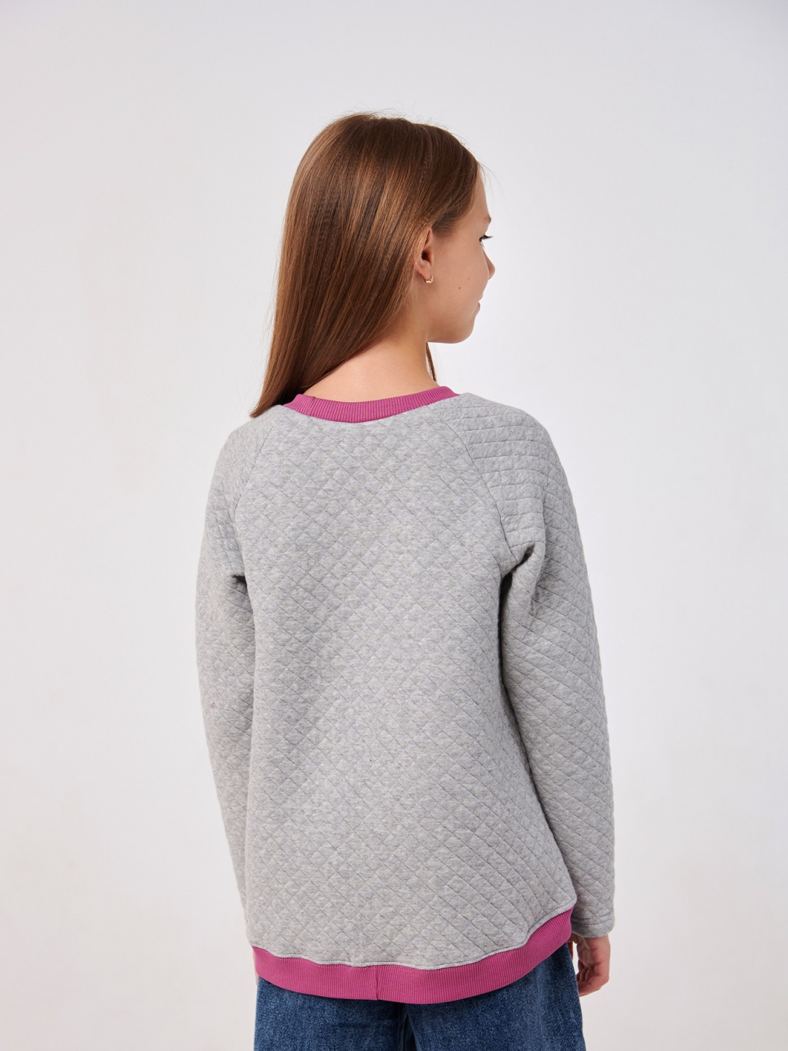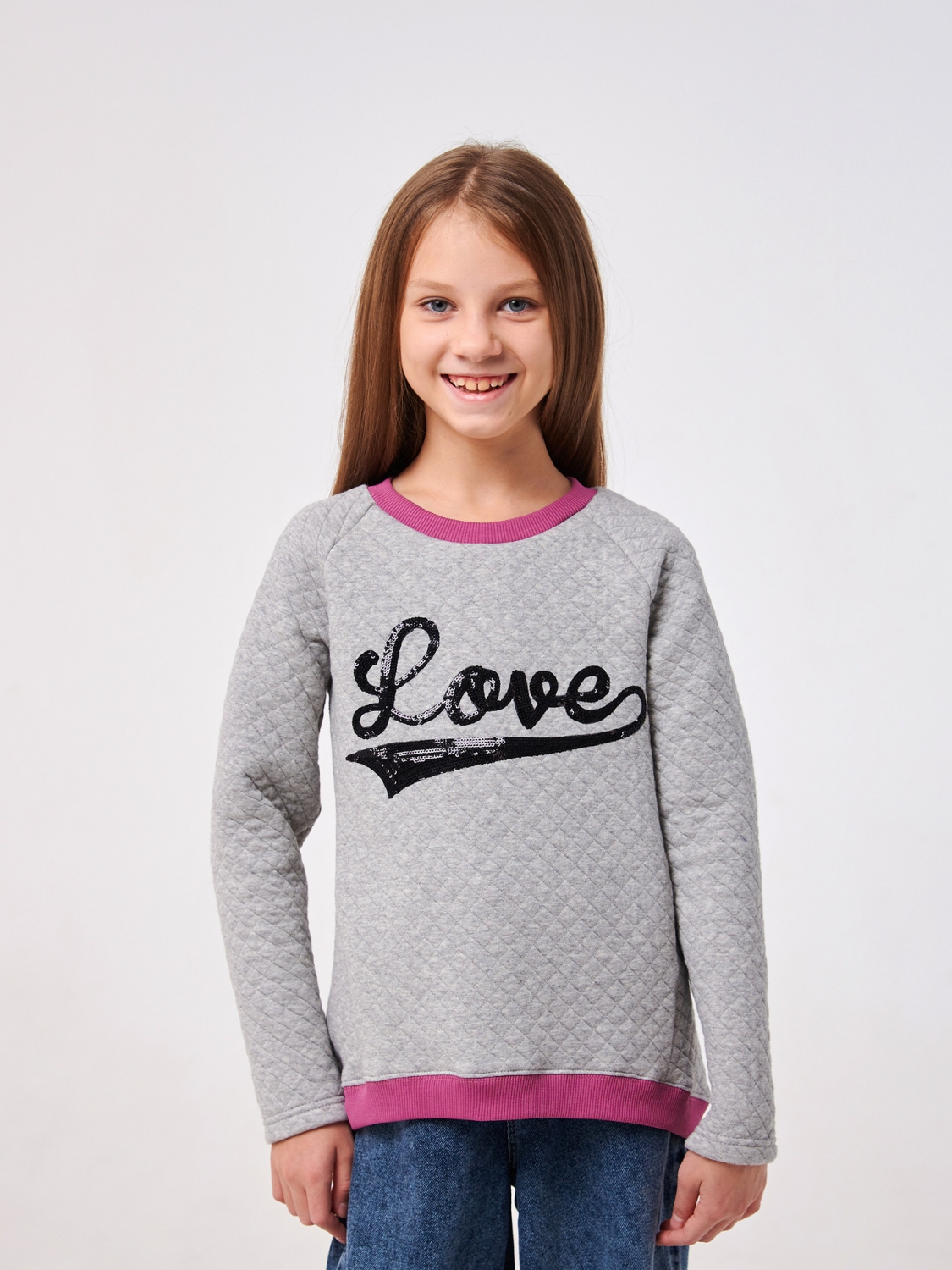 Теплий світшот у кольорі сірий меланж – ідеальний вибір для дівчаток, які цінують комфорт та стиль. Пошитий з високоякісного полотна капітон, він забезпечує м'якість і приємну текстуру, щоб ваша дівчинка почувала себе затишно та комфортно. Світшот прикрашений чорною нашивкою з написом "Love" (Любов), який додає особливий шарм та стиль цієї моделі. Світшот має зручний та сучасний крій з подовженою спинкою та довгими рукавами, які забезпечують додаткове тепло та комфорт у холодні дні. Він ідеально поєднується з джинсами, легінсами або брюками, створюючи бездоганний образ для маленької модниці.