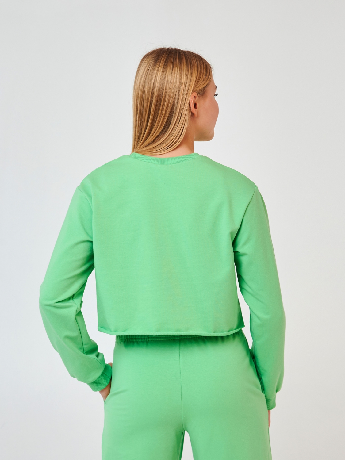 Зроби свій повсякденний образ чарівно стильним із новим укороченим світшотом. Свіжий ментоловий колір створює весняну атмосферу та надає образу легкість. Незвичайний дизайн з необробленим краєм – це стильно та сучасно. Прямий друк із написом "Give Me Perfect Likes" додає нотку гумору та індивідуальності.