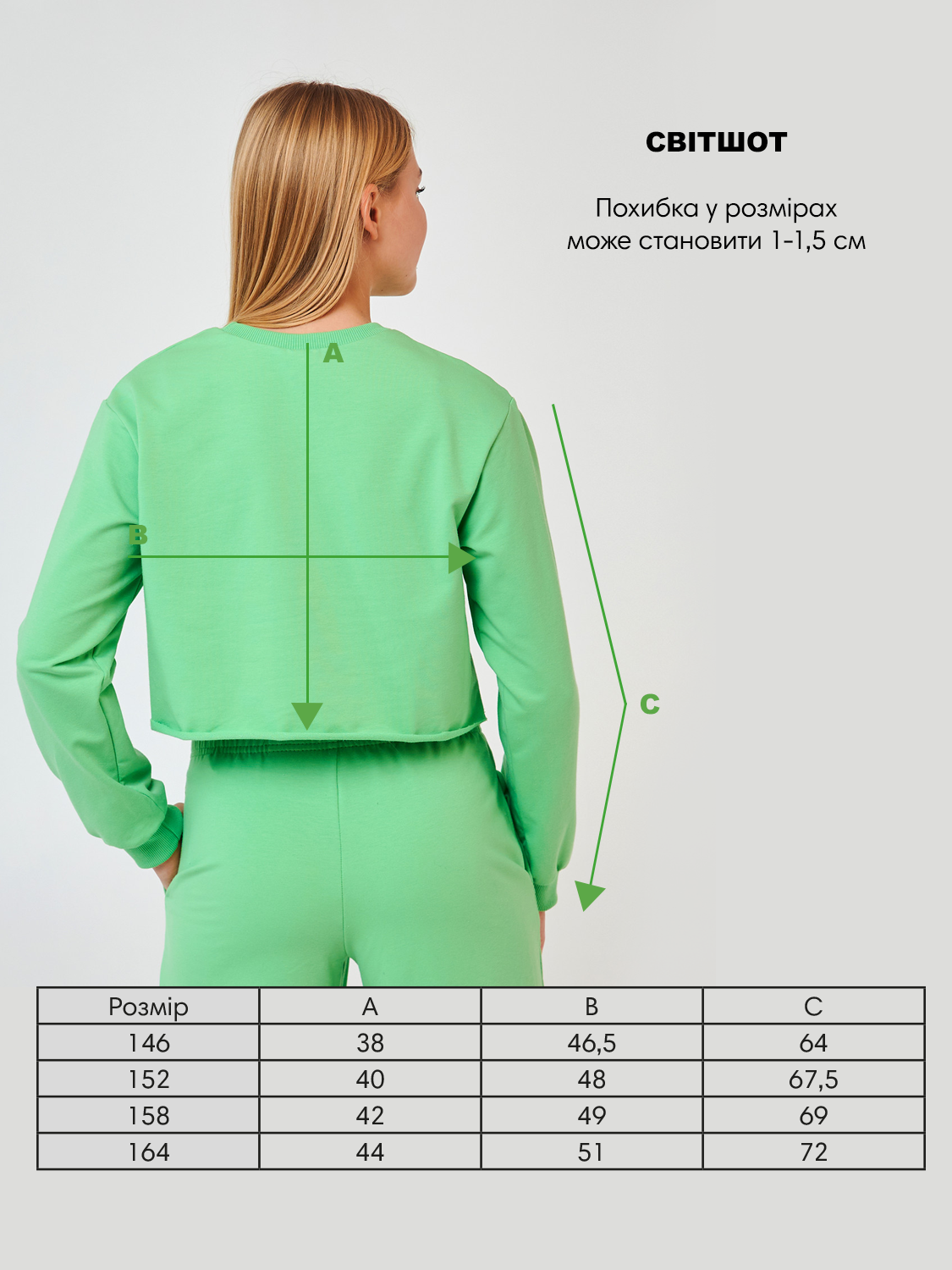Дитячий світшот | 95% Бавовна | Демісезон | 146, 152, 158, 164 | Модний та стильний для дівчинки SMIL 116619 Ментол