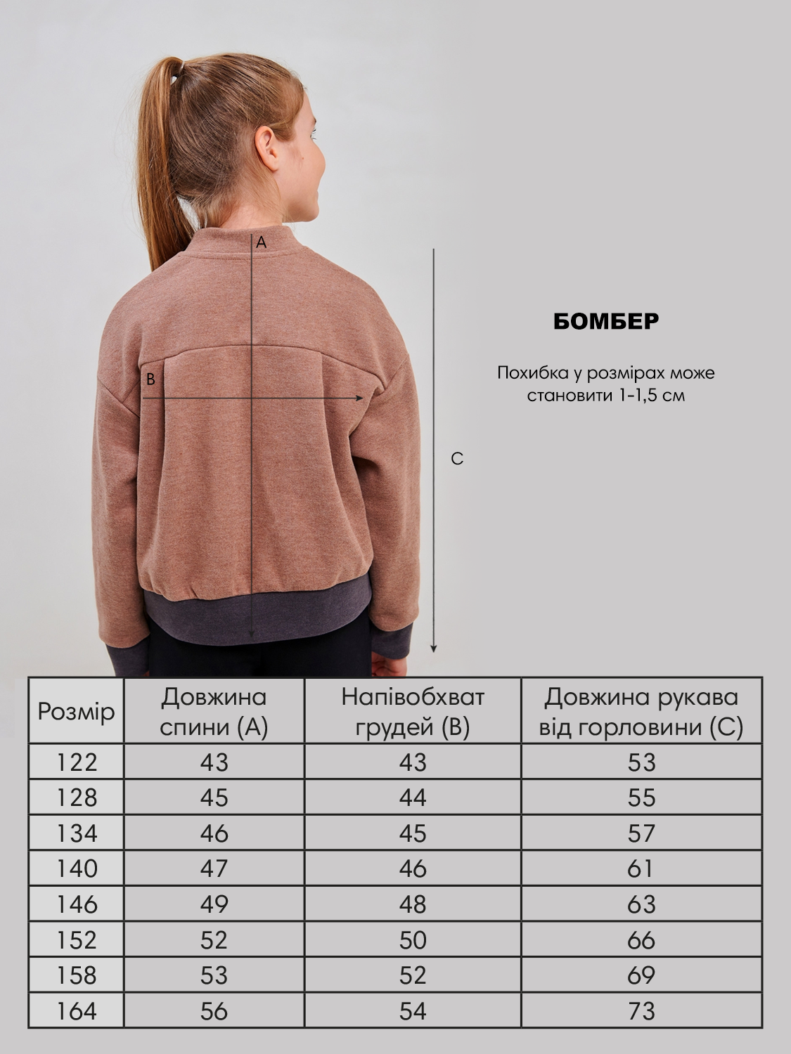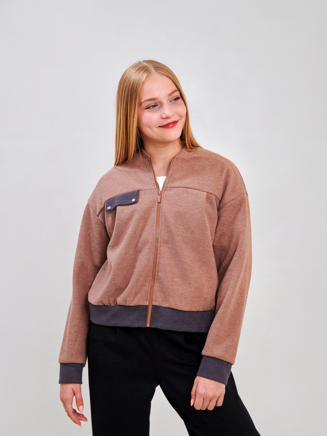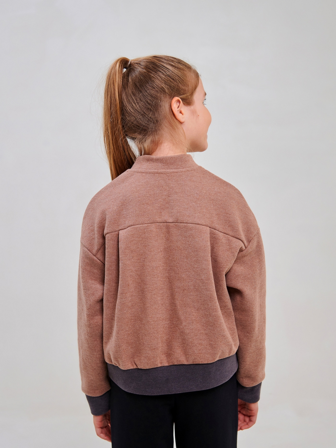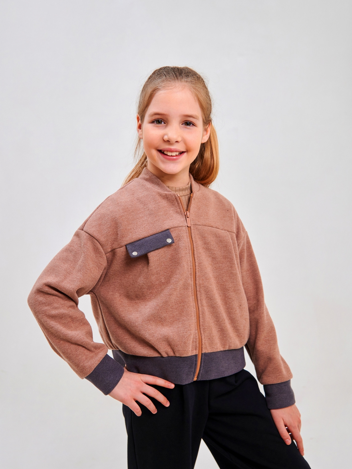 Дитячий бомбер | Розмір: 122 см – 164 см | Якісний трикотаж Селяник | Надійні блискавка та кнопки | Зручний та модний для дівчинки SMIL 116640 Мокко