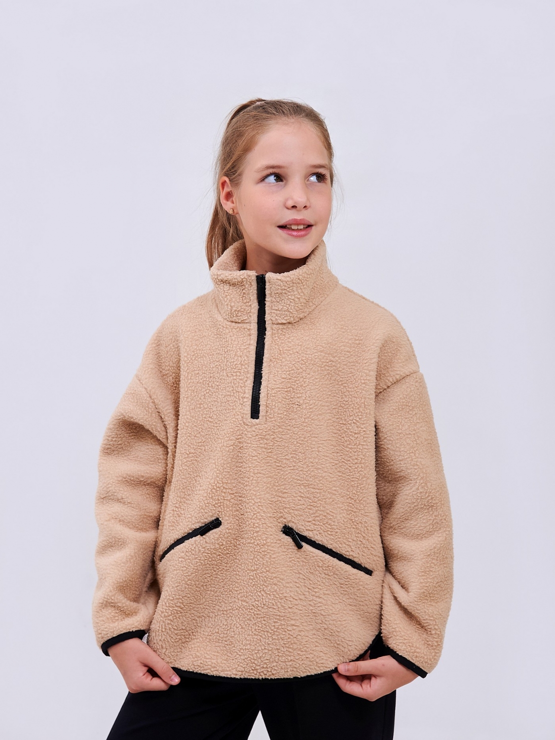 Цей теплий світшот із шерпи для дівчинки стане улюбленим елементом гардеробу, забезпечуючи вашому малюкові затишок та стиль щодня. Блискавка зверху - зручно вдягати та знімати, кишені на блискавці - функціональність та стиль в одній деталі! Світло-бежевий колір: універсальний та стильний, легко комбінується з іншими речами.