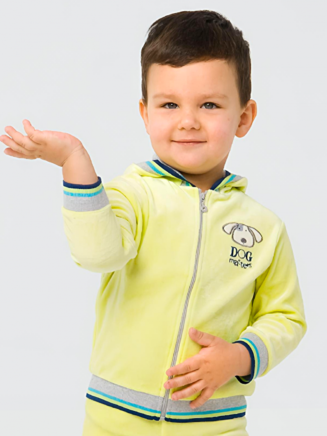 Стильна куртка демісезонна підійде малюкам у віці від 2 до 6 років. Цей виріб виконаний з гіпоалергенного, приємного до тіла велюру, який добре зберігає тепло. Куртка застібається на блискавку, оснащена капюшоном та резинками-манжетами на рукавах. Спереду виріб прикрашений нашивкою. Найкраще носити куртку разом із джинсами чи спортивними штанами. Її можна одягати під час спортивних занять, у дитячий садок або на прогулянки