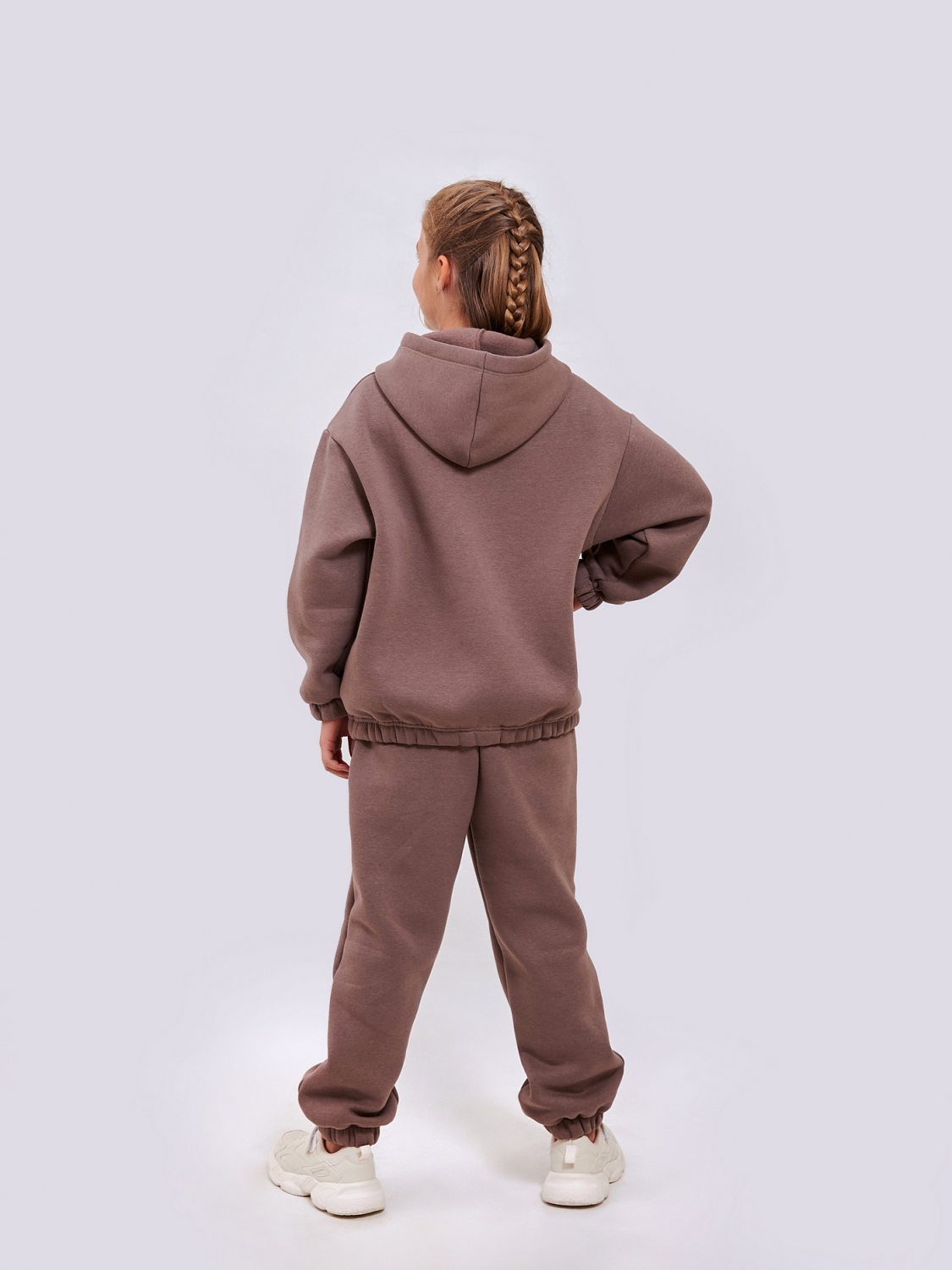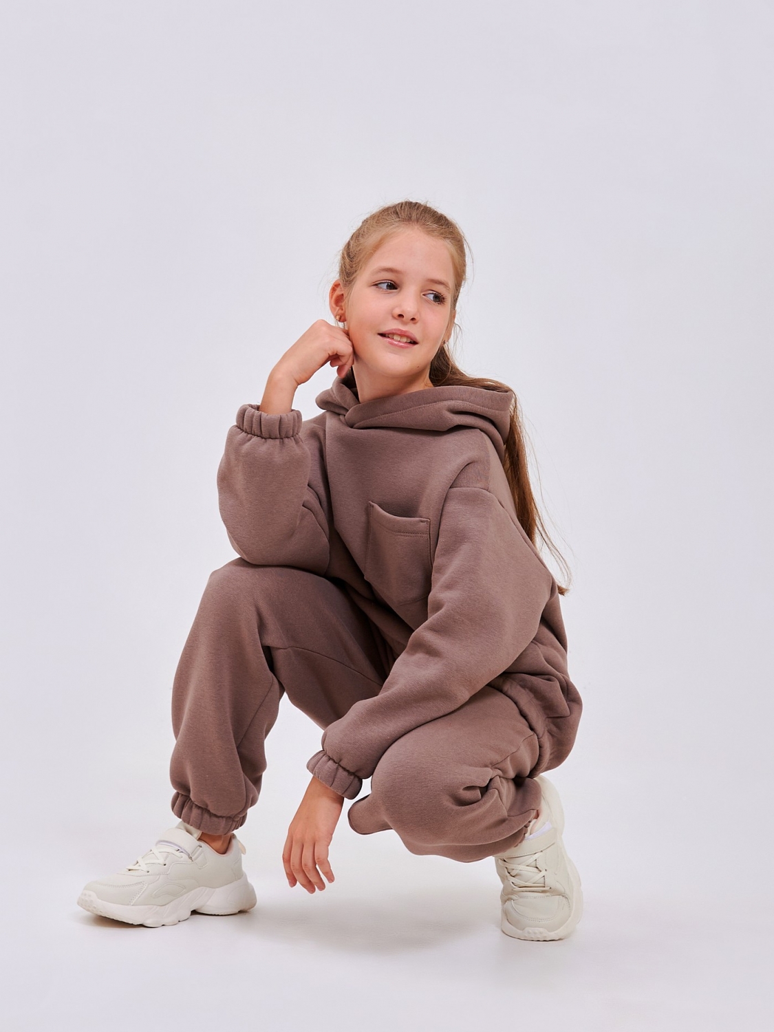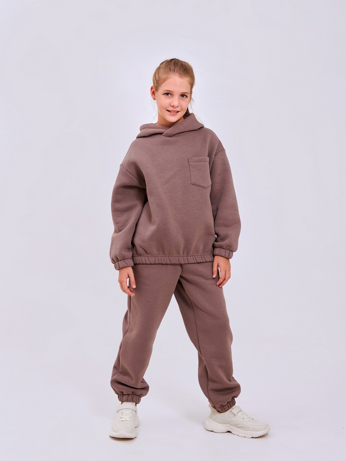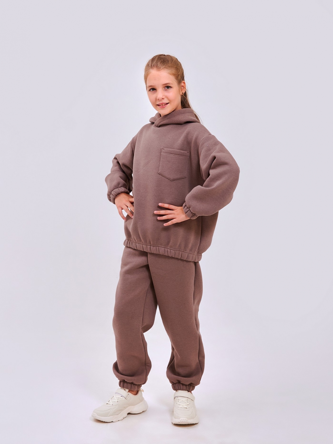 Ваша дівчинка почуватиметься комфортно та модно у нашому теплому костюмі з футера 3-х нитки з начосом. Кофта з капюшоном захистить від прохолоди, а декоративна кишеня додасть чарівного акценту. Штани із зручними кишенями доповнять образ і дозволять взяти з собою потрібні дрібниці. Стильний та універсальний колір латте, легко поєднується з будь-якими аксесуарами. Теплий дитячий костюм для дівчат стане улюбленим вбранням для активних прогулянок та ігор.