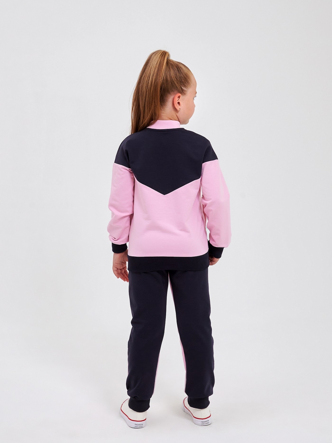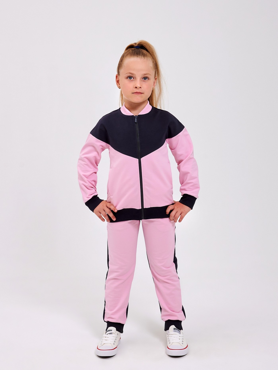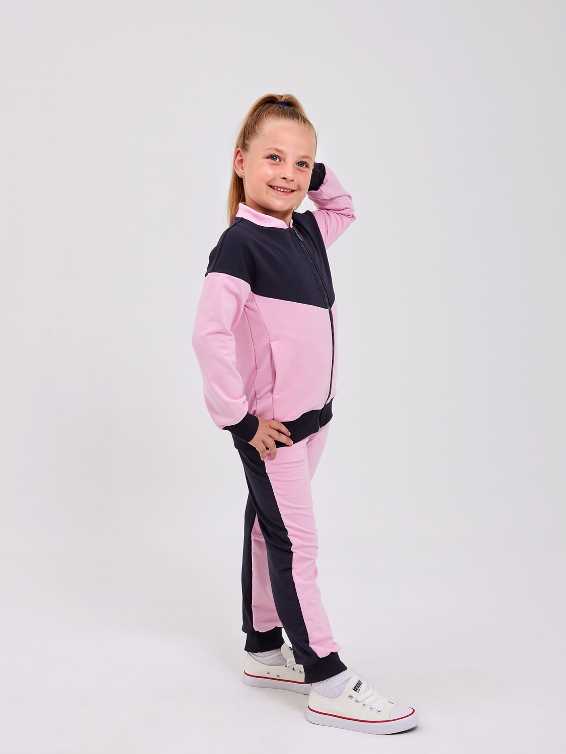 Спортивний костюм для дівчинки з м'якого стрейчевого футера створений для активних та модних! Ефектне поєднання рожевого та темно-сірого відтінків. Зручна кофта на блискавці швидко надіти і зняти. Штани з манжетами забезпечують комфорт під час руху. Ідеальний для школи, прогулянок та занять спортом.
