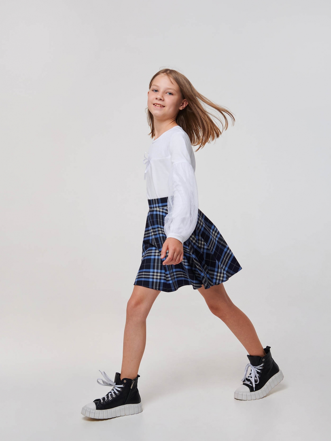 Спідниця-кльош є символом витонченості та грації. Вона обрамляє фігуру вашої дівчинки і створює легкий рух, що хвилює, при кожному кроці. Клітчастий візерунок вносить елемент класики в образ, що дозволяє створювати стильні комплекти для різних сезонів та приводів. Поєднуйте спідницю з блузами, світшотами чи футболками, щоб створювати різноманітні модні образи. Для більшої зручності у виробі передбачена потайна застібка-блискавка.
