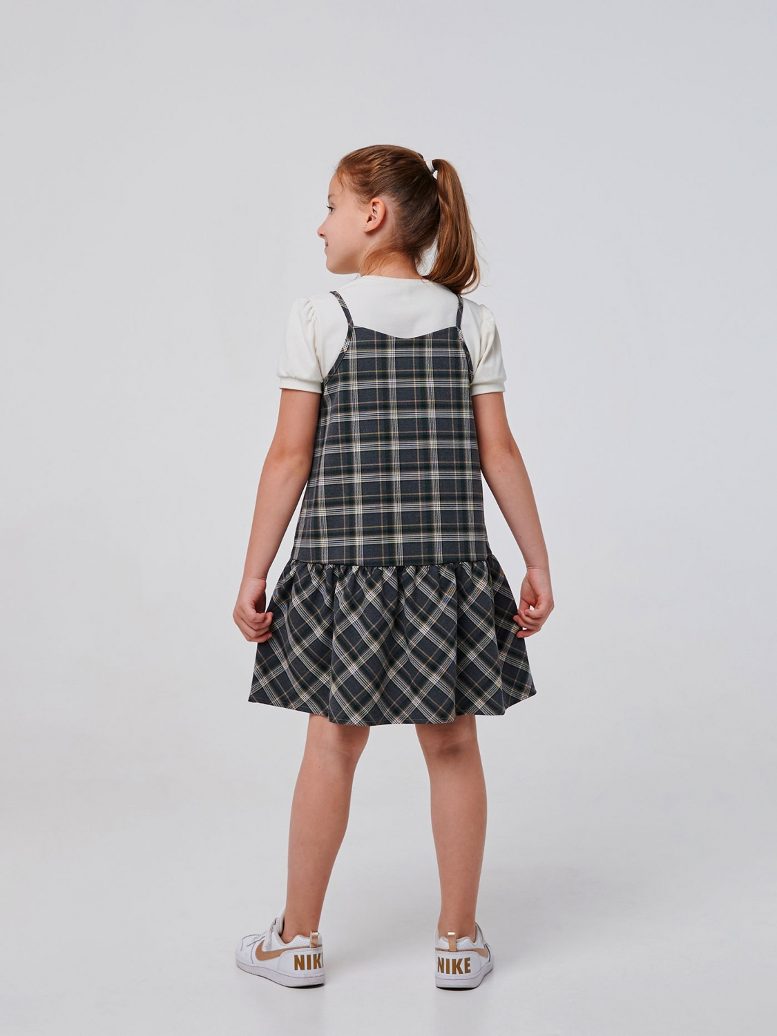 Сарафан - це універсальна річ у гардеробі, яку можна поєднувати з різними аксесуарами та одягом. Він підходить як для повсякденних виходів, так і для спеціальних заходів. Клітчастий візерунок надає стиль і класику сарафану, роблячи його актуальним протягом багатьох сезонів. Він створює модний акцент і дозволяє виразити індивідуальність вашої малечі. Наш картатий сарафан з воланом поєднує у собі вишуканість та грайливість, створюючи неповторний образ, який точно сподобається вашій дівчинці. Волан додає легкості та ніжності, створюючи ніжний шарм та ефект руху.