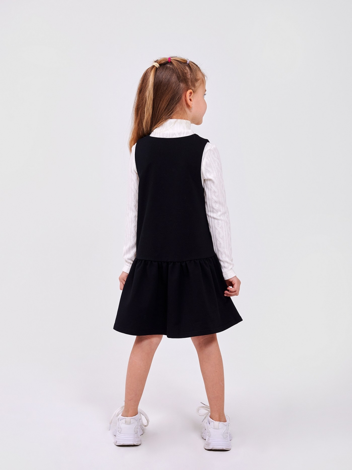 Чорний сарафан для дівчинки з м'якого та комфортного полотна стрейчевий футер прикрашений стильними гудзиками спереду, що надають образу витонченого вигляду. Вільний крій не сковує руху, а класичний колір легко поєднується з будь-якою блузкою чи гольфом. Ідеальний варіант для школи та особливих випадків – красиво, зручно та практично!