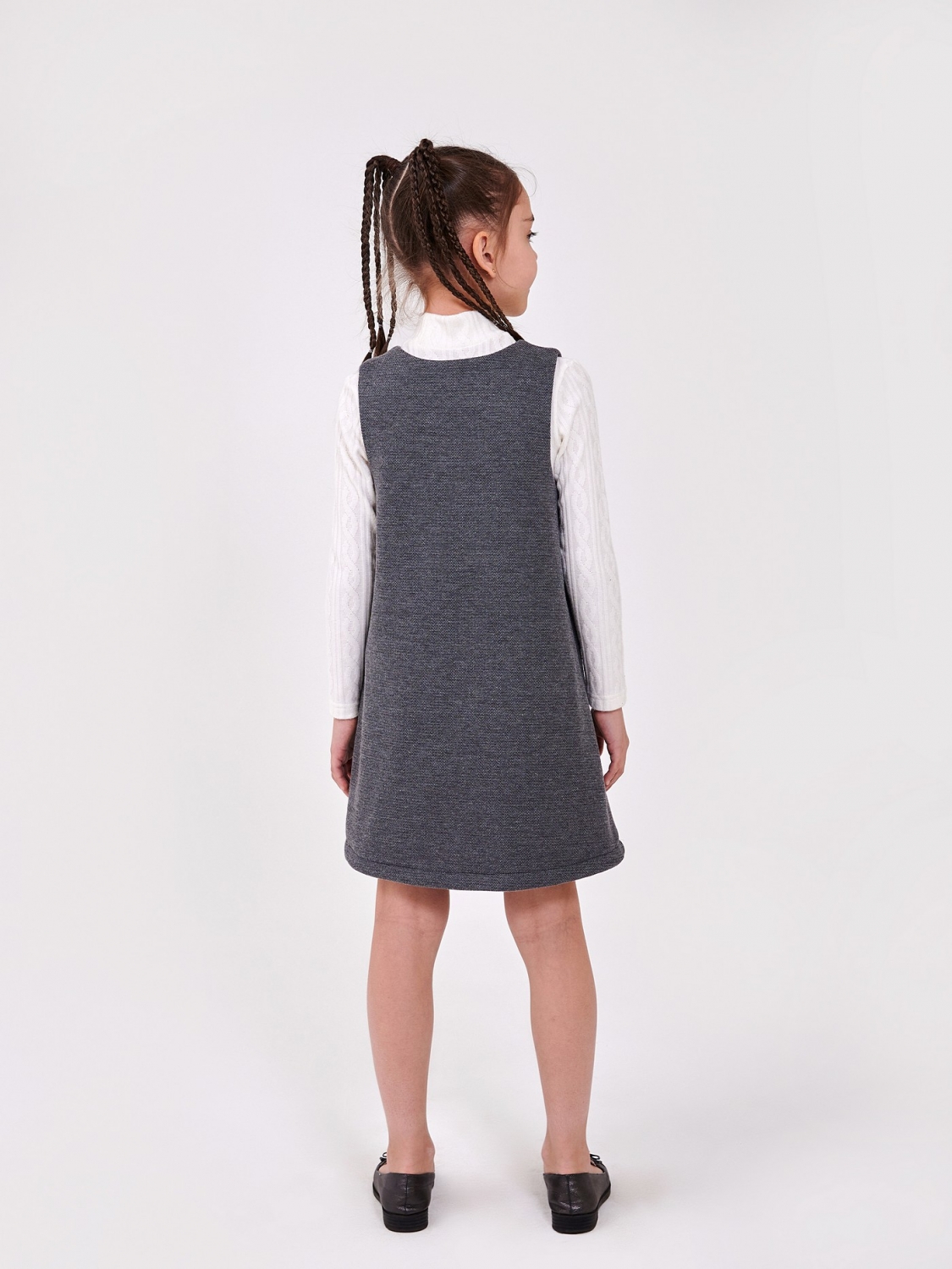 Дитячий сарафан для дівчинки | Розмір: 122 см – 140 см | Стрейч-футер найвищої якості | Ідеальний до школи | Стильно з блузками та лонгслівами для дівчинки SMIL 120449 Темно-сірий меланж