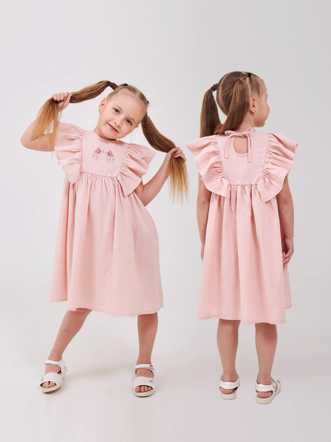 Дитячий сарафан | від 92 до 116 | 100% бавовна | Ніжний муслін вищої якості | Ідеально на літо | Дозволяє шкірі дихати для дівчинки 120410 Рожева пудра