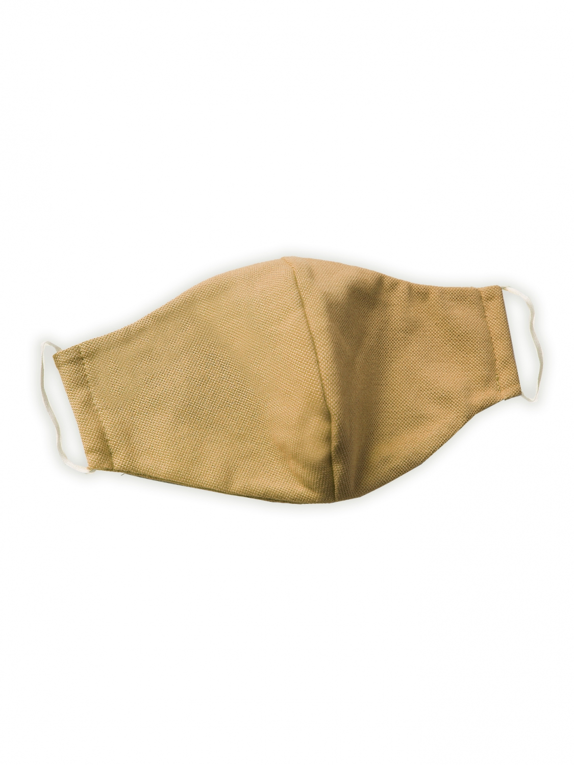 Універсальна захисна маска гірчичного кольору – аксесуар, який можна використовувати щодня. Для пошиття використовувалося м'яке бавовняне полотно – лакосту. Маска оснащена двома гумками, завдяки яким вона фіксується на обличчі. Аксесуар розрахований на багаторазове використання протягом усього року. Завдяки зносостійкому матеріалу виріб легко витримує часті прання.
